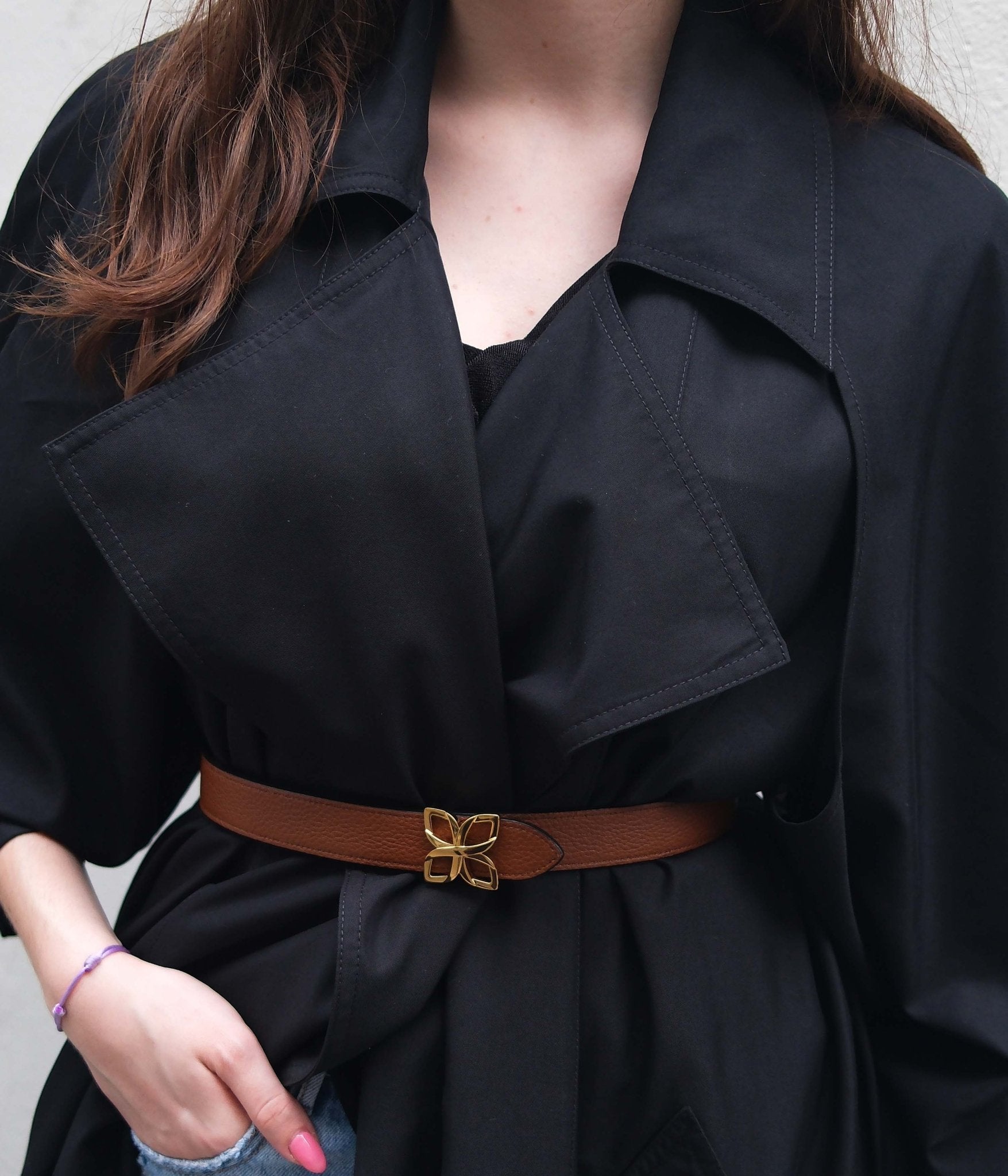 Subtile et naturelle, la Ceinture Hortensia Doré 25 mm se décline en cuir grainé Taupe réversible en Marron, dans une version affinée pensée pour accompagner la silhouette avec discrétion et élégance. Deux teintes chaleureuses et intemporelles, qui se répondent en douceur pour offrir une allure sobre et équilibrée.