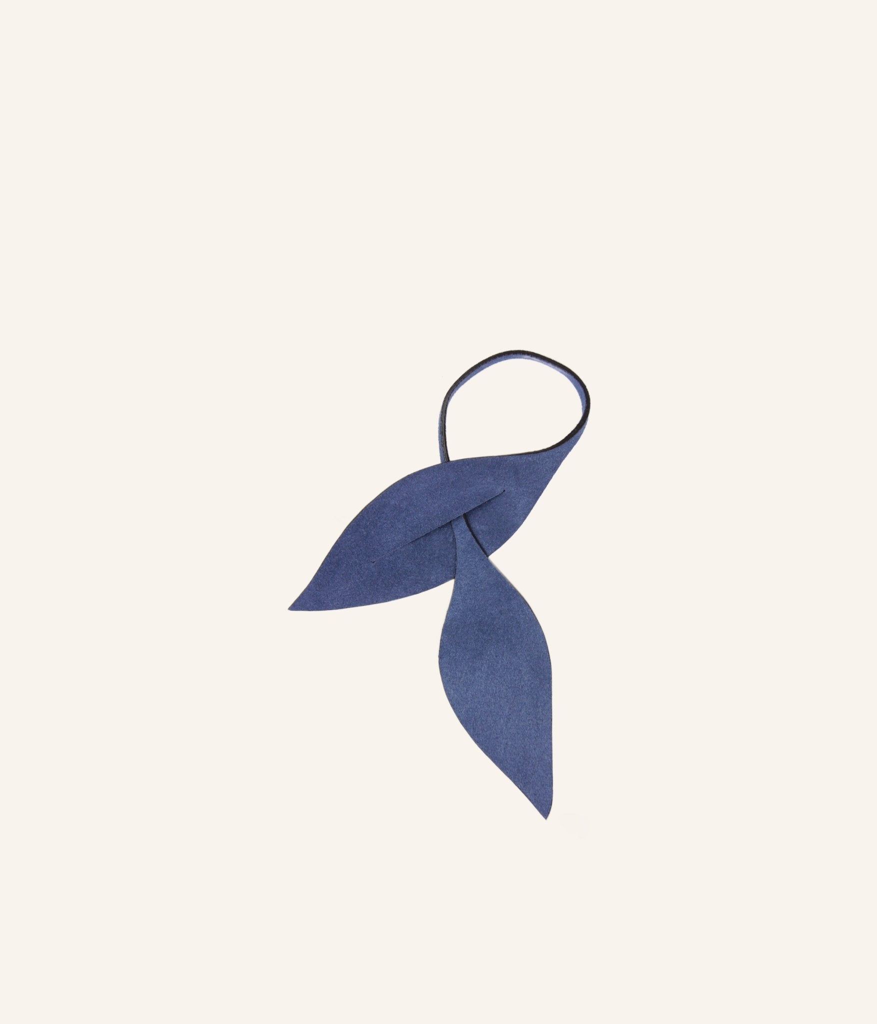 Le charm Folia en Suède de veau Jeans se distingue par ses feuilles finement enroulées, qui évoquent la profondeur et la modernité de cette teinte bleutée. Réalisé à la main en Italie dans un suède de qualité exceptionnelle, cet accessoire s’attache facilement à une anse ou une bandoulière, apportant à vos sacs une note élégante et pleine de caractère.