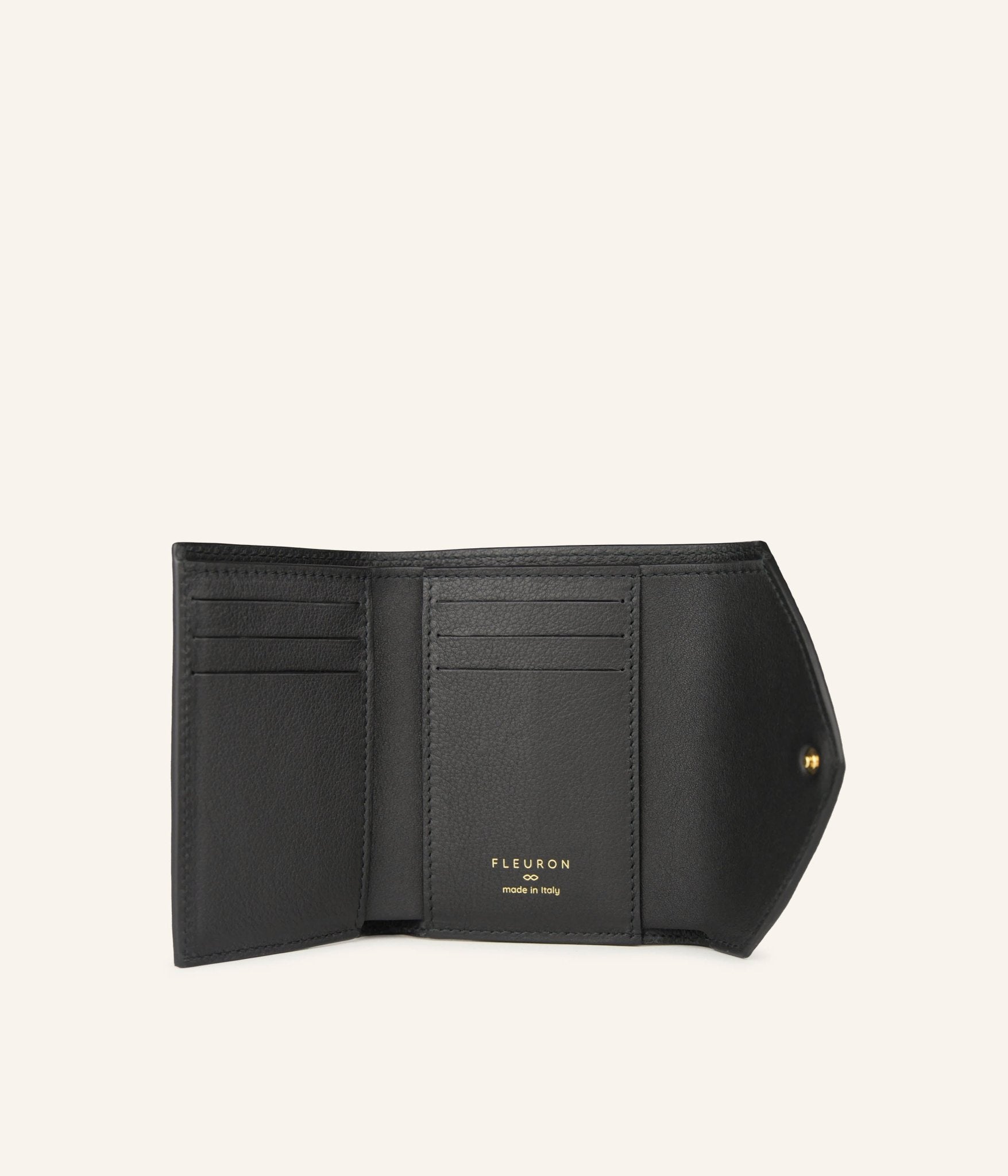 Élégant et indémodable, le portefeuille Via en Noir incarne la quintessence du raffinement. Sa teinte profonde souligne la pureté de ses lignes et s’adapte à toutes les occasions. Confectionné en cuir de veau grainé de haute qualité, il allie design minimaliste et souci du détail. Compact et fonctionnel, il dispose de compartiments bien pensés pour cartes et billets, tout en se glissant facilement dans votre sac. Une création italienne qui exprime le savoir-faire artisanal et l’élégance discrète de Fleuron.