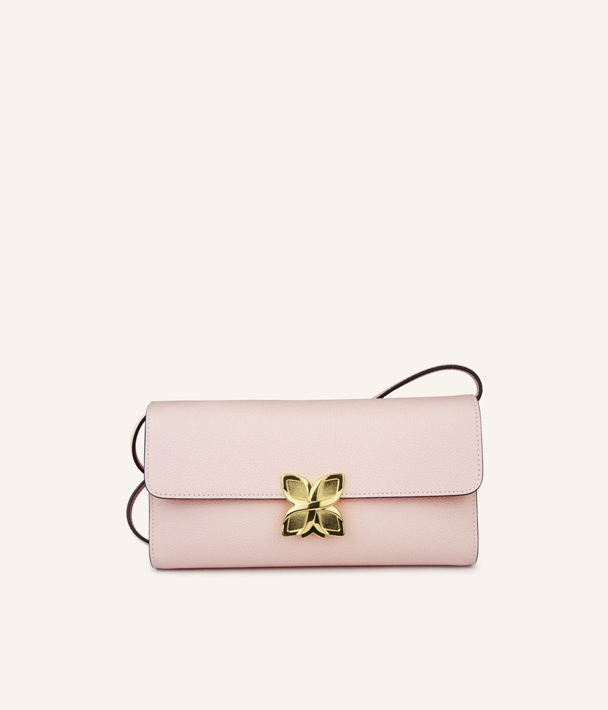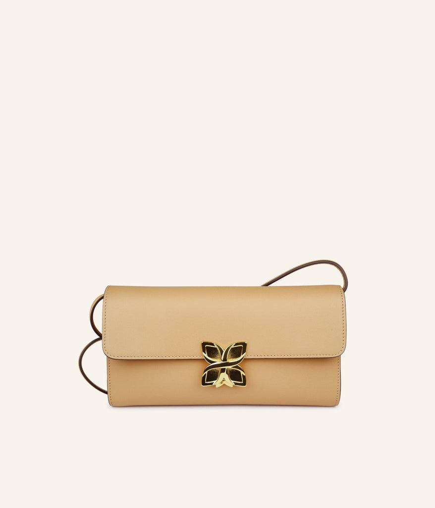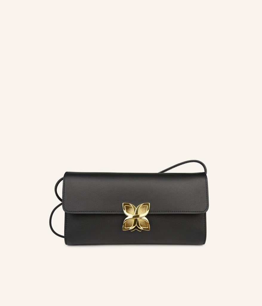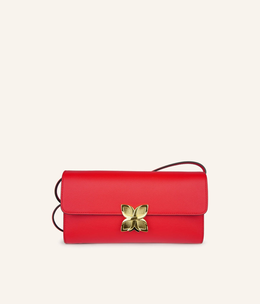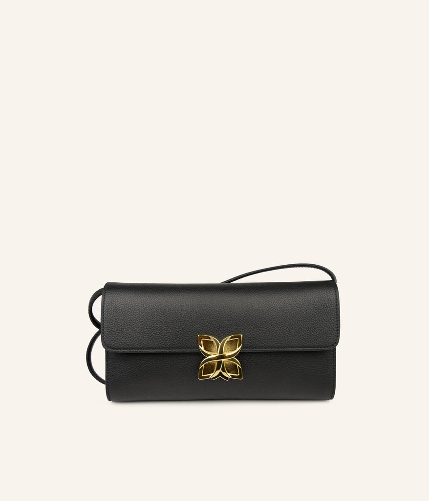 Sa forme enveloppante à rabat s’ouvre sur un intérieur spacieux, doublé de suédine douce, et agrémenté de poches plates pensées pour organiser vos indispensables du quotidien. Son fermoir bijou, inspiré d’une fleur stylisée, signe la pièce d’un geste poétique et discret.