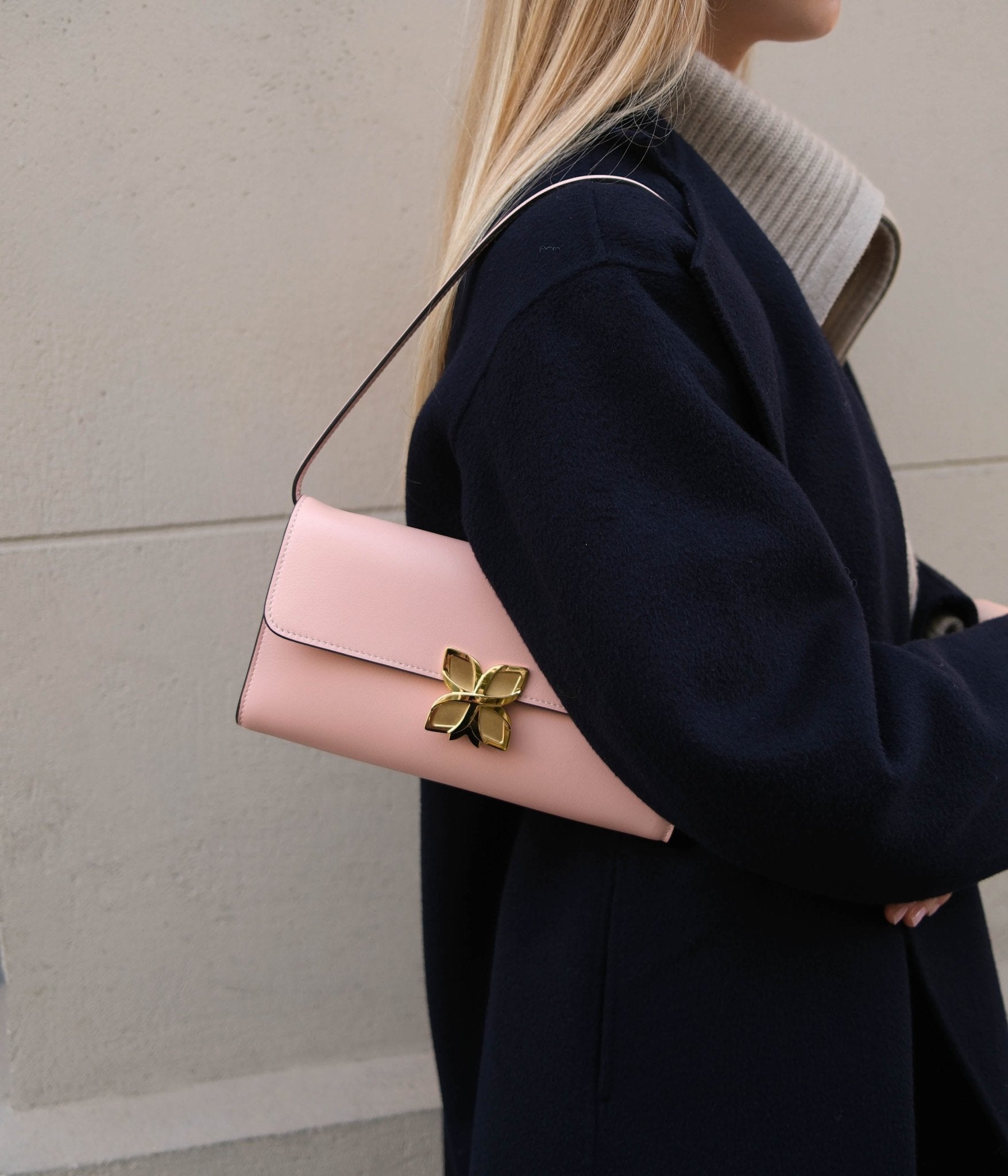 Déclinaison précieuse du sac Hortensia, le Clutch en conserve l’âme florale et la réinvente avec légèreté. Ses lignes épurées rappellent la douceur d’un pétale, tandis que son format élancé murmure l’élégance d’un soir.