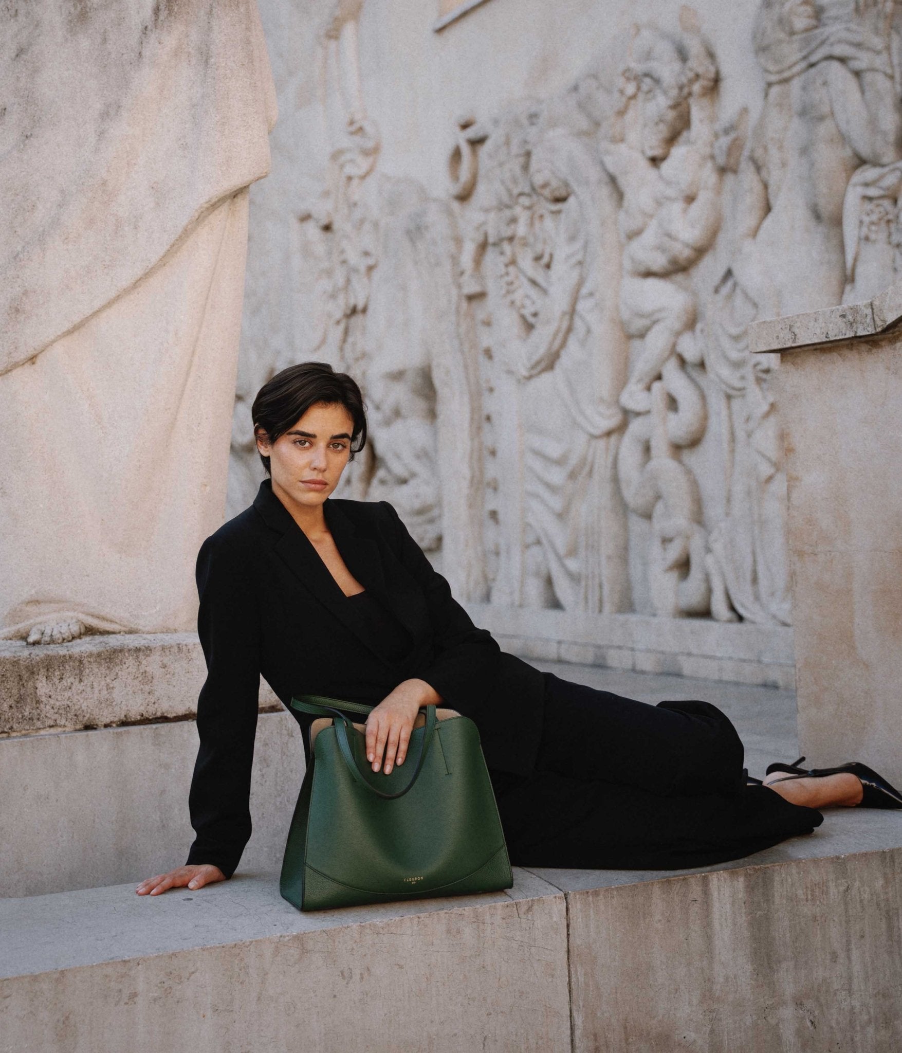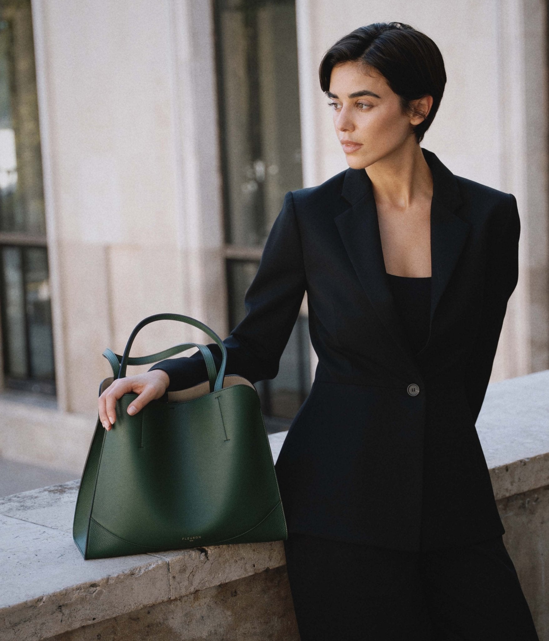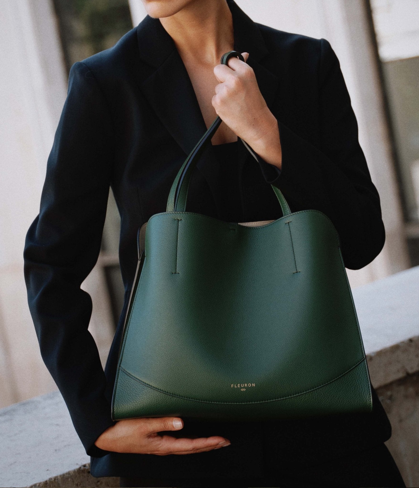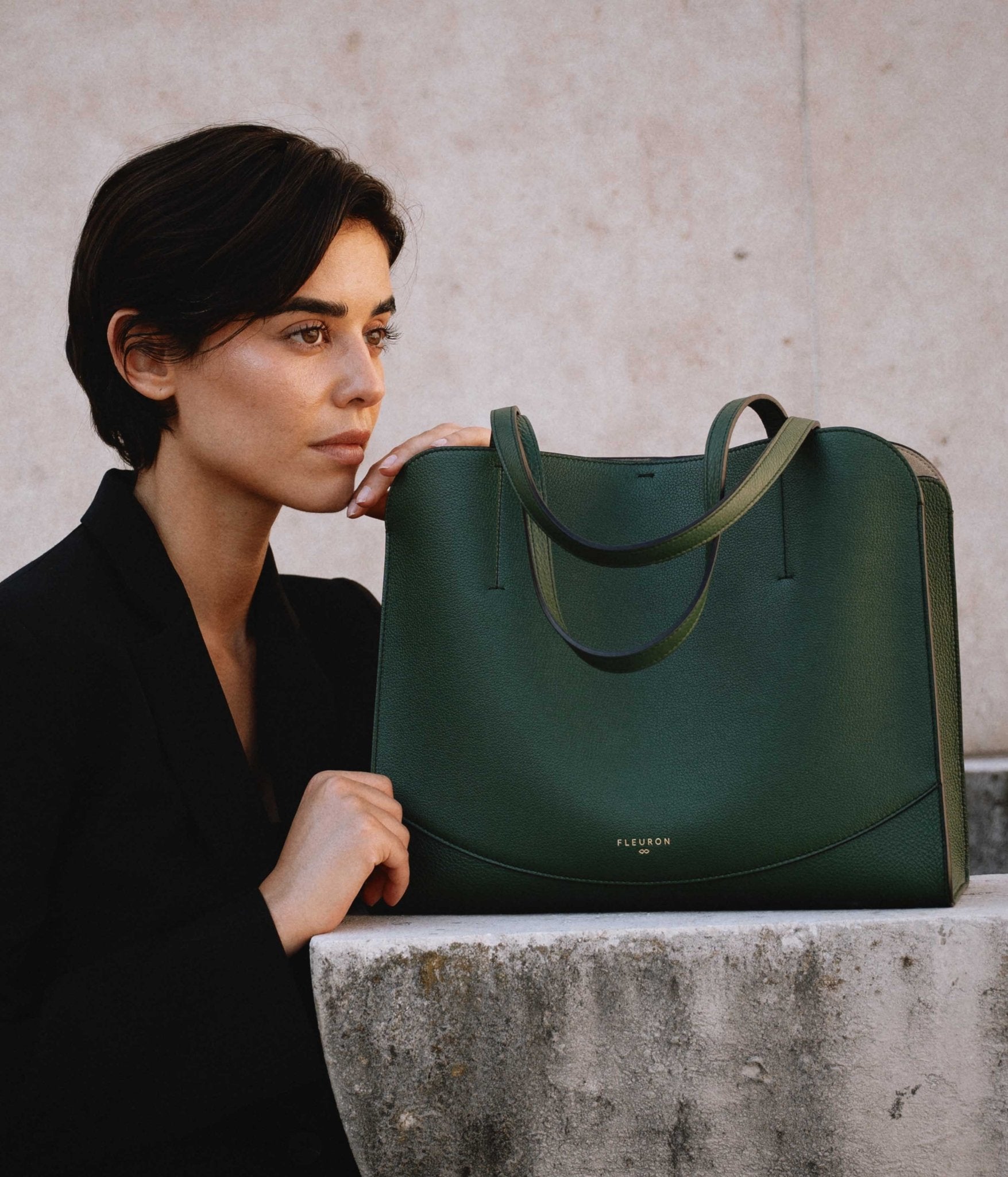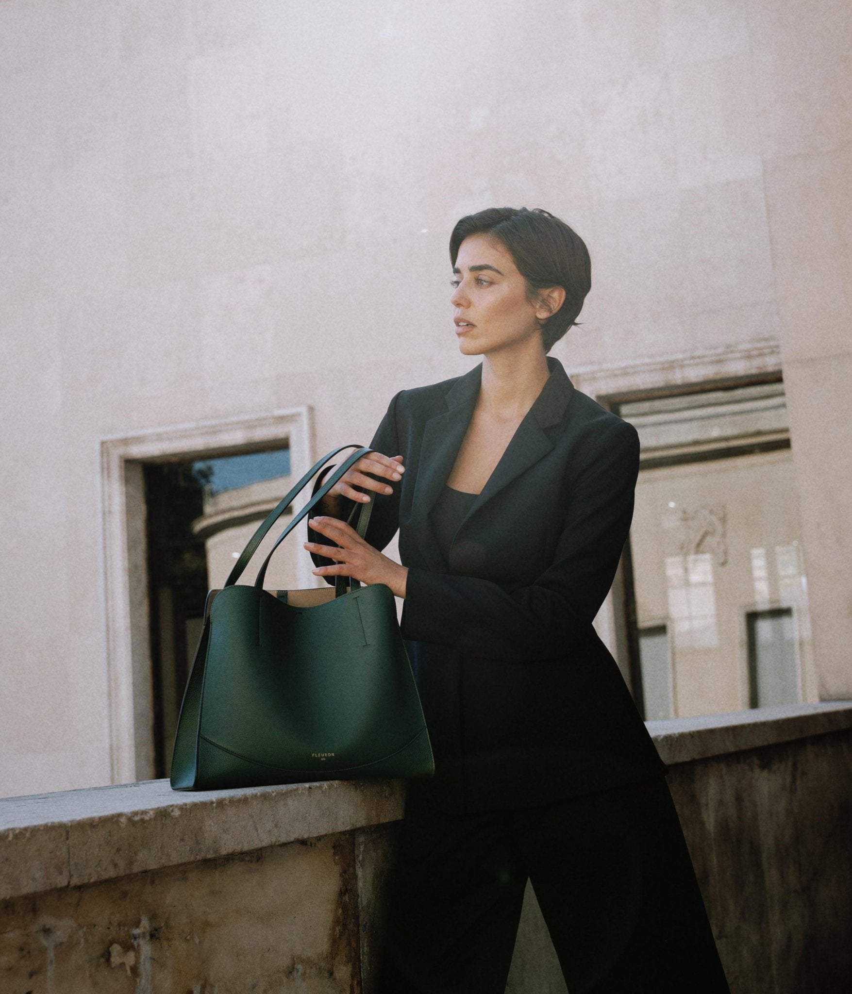 Le cabas Medium Oak en Vert Sapin se distingue comme un essentiel contemporain: une pièce forte qui allie profondeur, modernité et intemporalité.