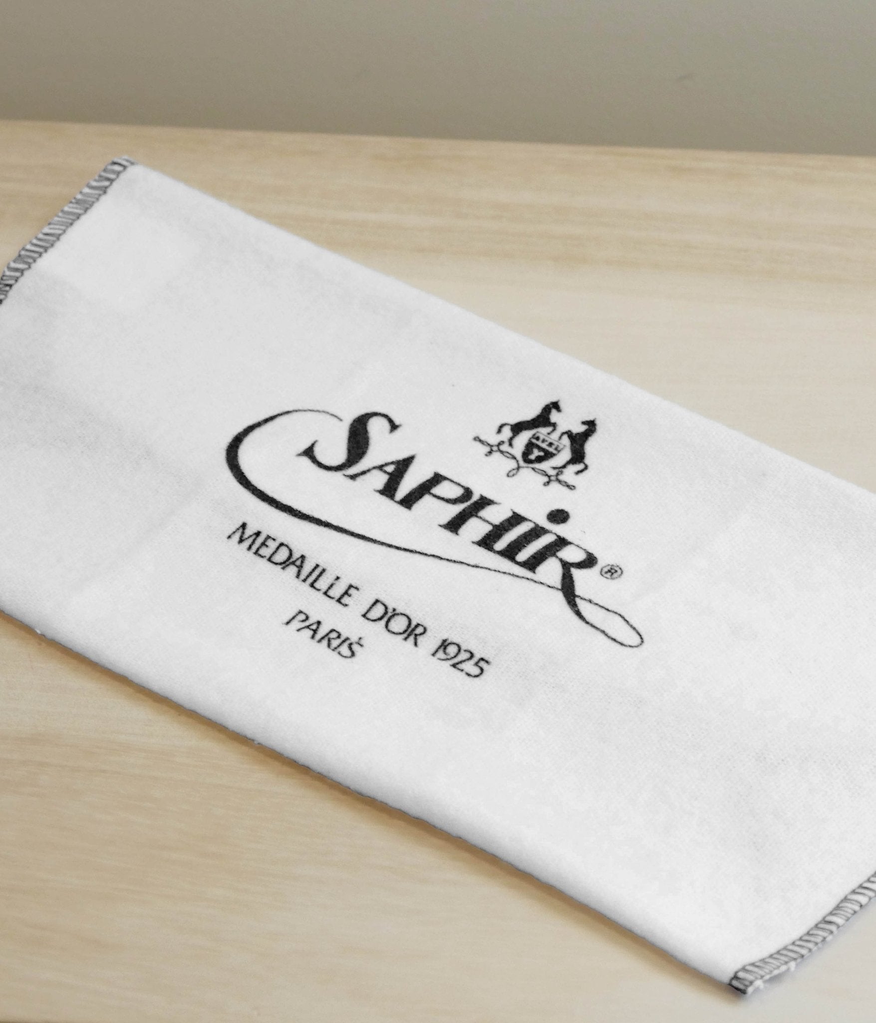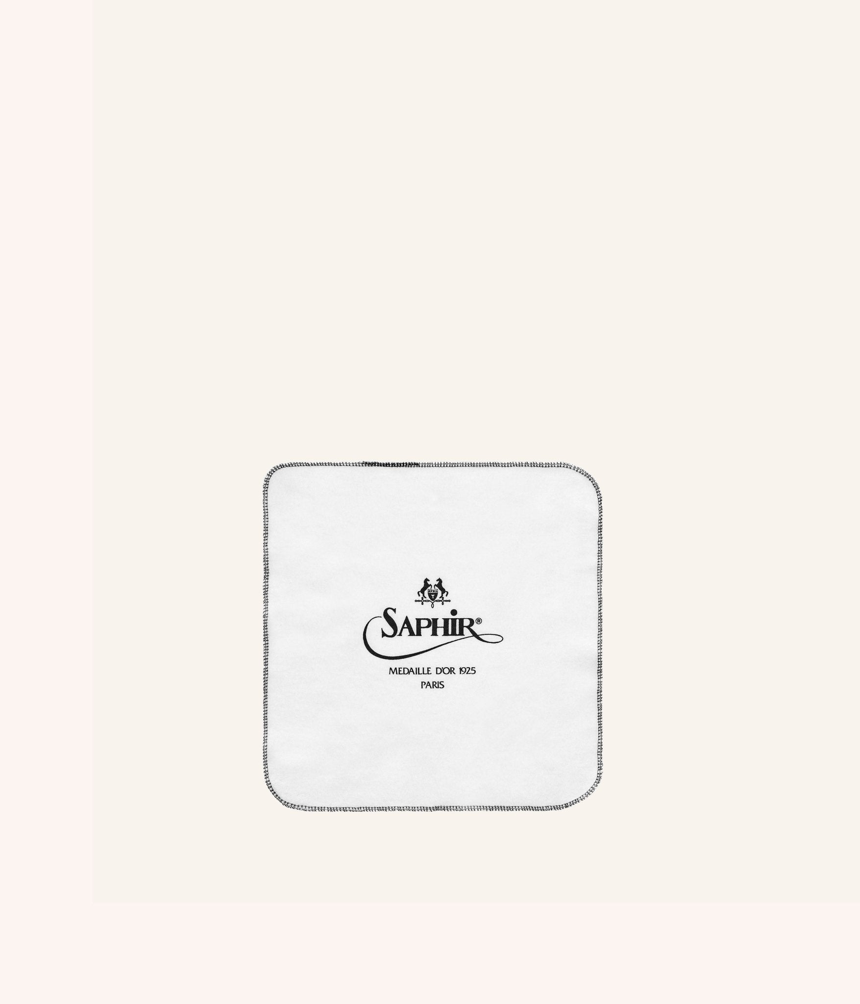 Chamoisine en coton aux couleurs de la marque Saphir Médaille d'or pour réaliser toutes les étapes de l'entretien de nos cuirs grainés et lisses.
