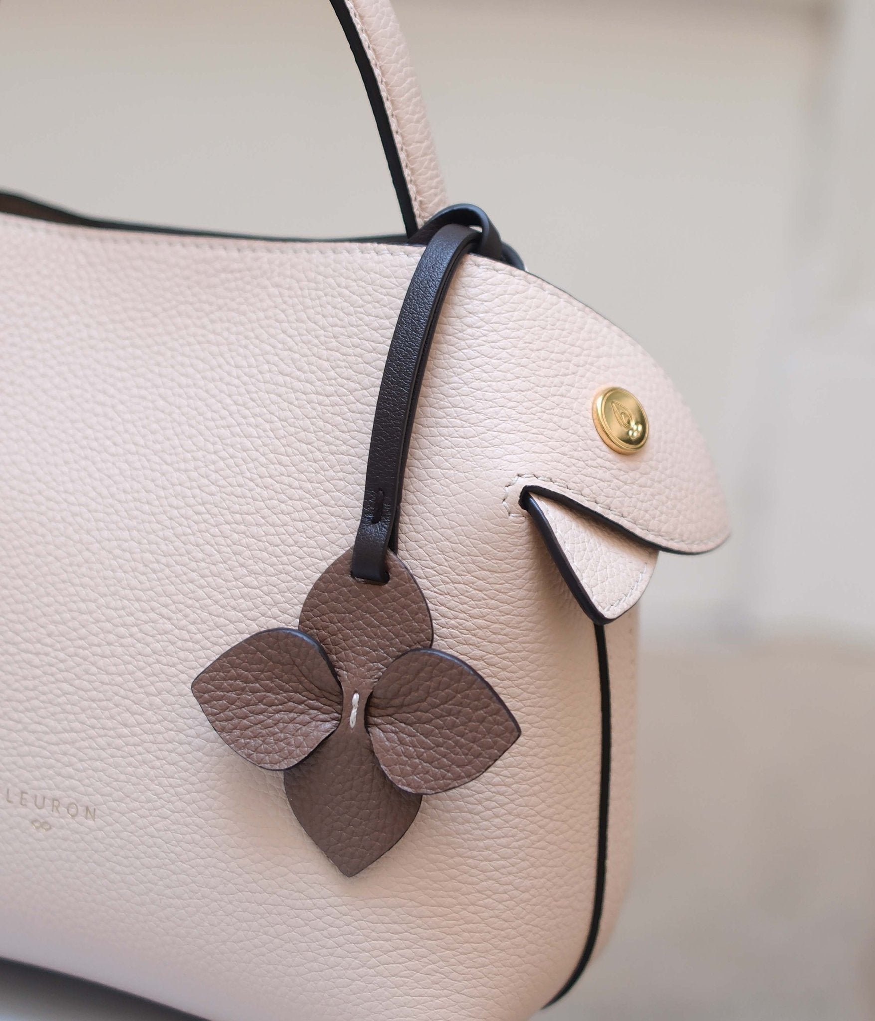 Avec sa teinte Marron Glacé, subtile et enveloppante, le Mini Sia apporte une élégance douce et contemporaine à votre sac. Ce brun clair aux reflets chauds s’adapte facilement à des tons naturels ou contrastés, offrant une alternative raffinée aux teintes classiques. Confectionné à la main en Italie dans un cuir de veau lisse, il s’attache aisément à une anse ou une bandoulière. Suspendu à un sac, il oscille avec grâce au fil de vos mouvements, rappelant la fluidité d’une fleur entrelacée, pour un style à la fois chaleureux et intemporel.