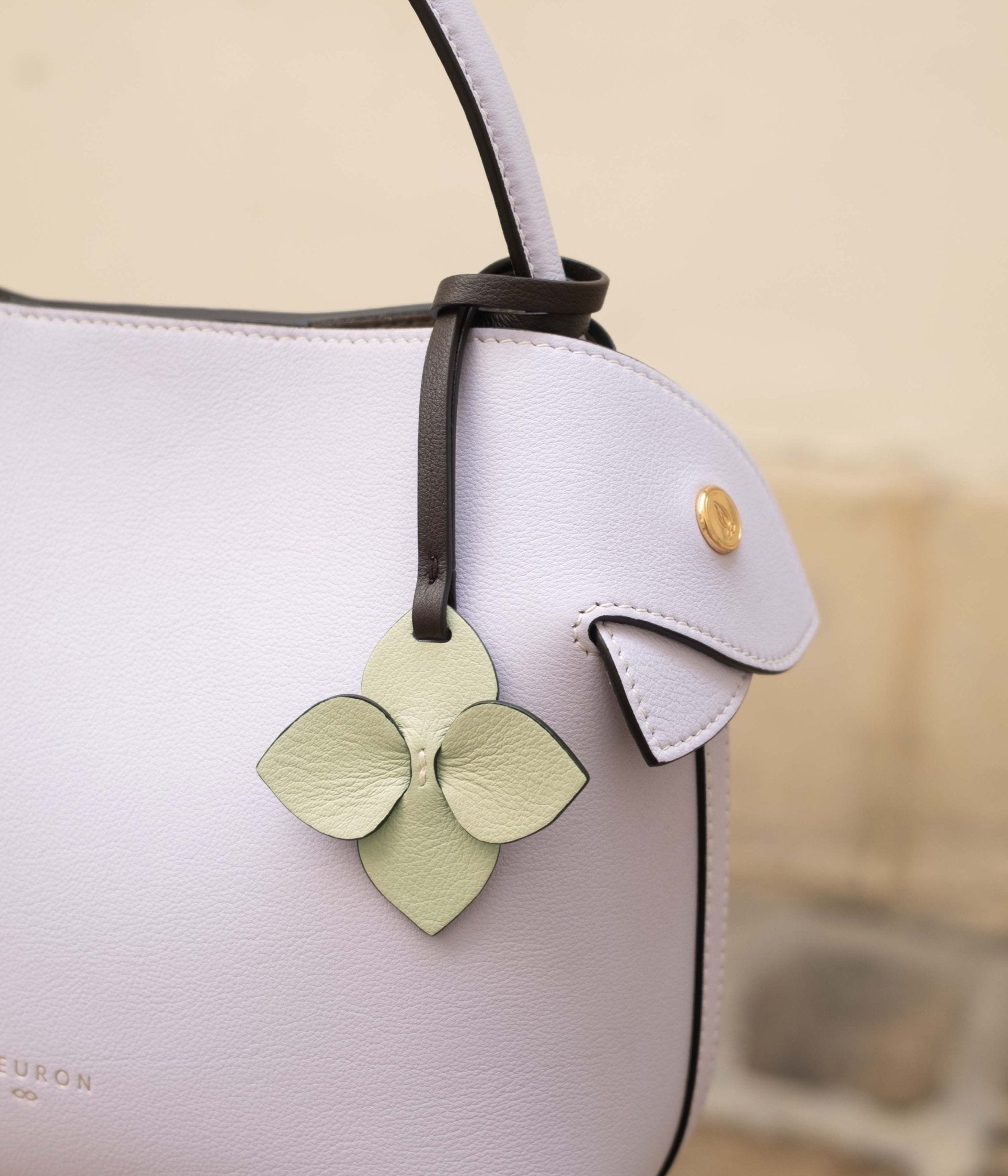 Avec sa teinte Vert d’Eau, douce et rafraîchissante, le Mini Sia apporte une touche de légèreté à votre sac. Ce vert pâle aux nuances aquatiques évoque la fraîcheur du printemps et se marie harmonieusement à des tons clairs ou naturels. Confectionné à la main en Italie dans un cuir de veau lisse, il s’attache facilement à une anse ou une bandoulière. Suspendu à un sac, il oscille délicatement au rythme de vos mouvements, rappelant la finesse d’une fleur entrelacée pour un style à la fois poétique et intemporel.