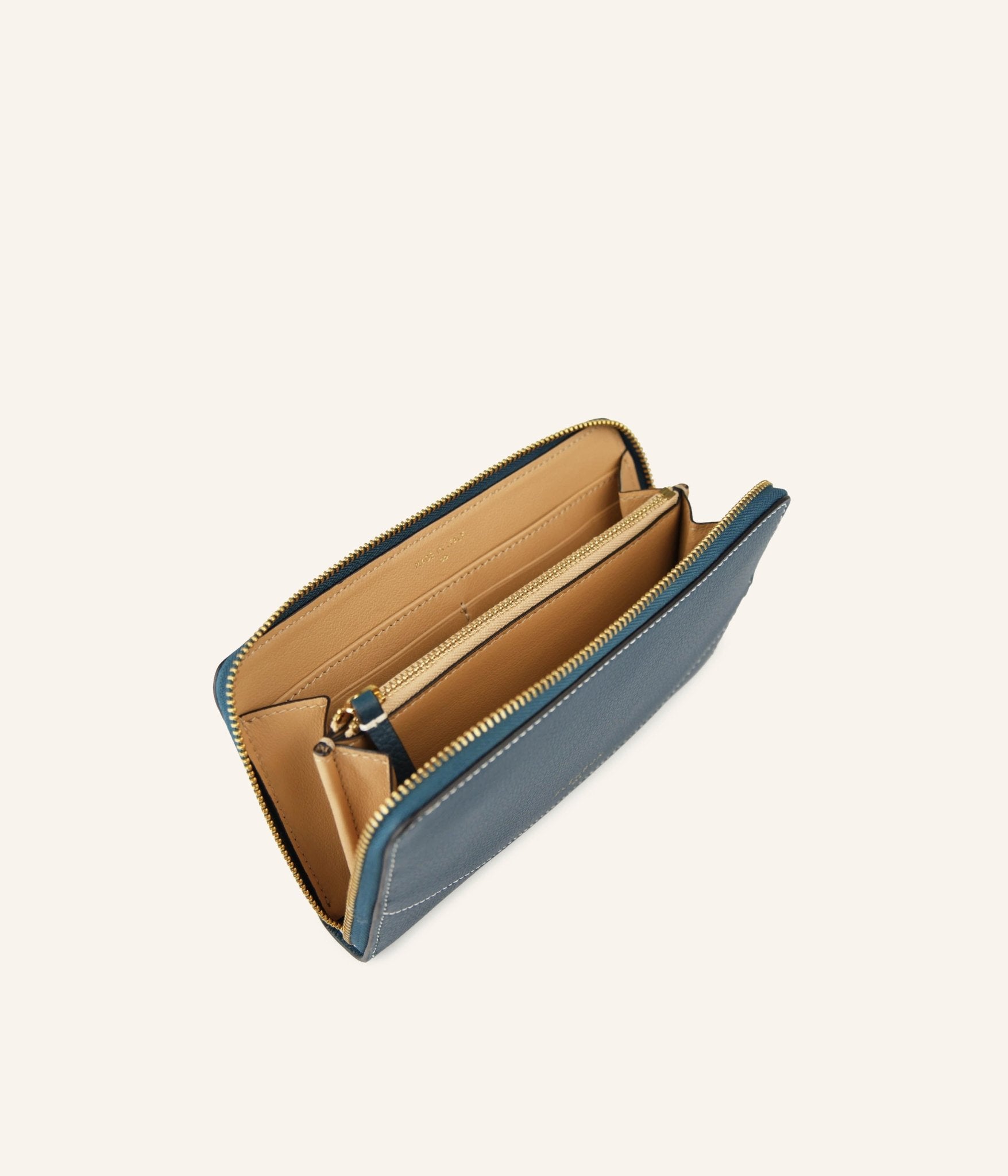 Laissez-vous emporter par la fraîcheur du Bleu Pacifique, une teinte vibrante et apaisante qui illumine vos essentiels du quotidien. Ce portefeuille zippé, confectionné en cuir de veau grainé, allie avec finesse élégance et fonctionnalité. Son intérieur soigneusement organisé offre tout l’espace nécessaire pour vos cartes, billets et monnaie. Fabriqué en Italie, il incarne l’équilibre parfait entre design raffiné et savoir-faire artisanal.