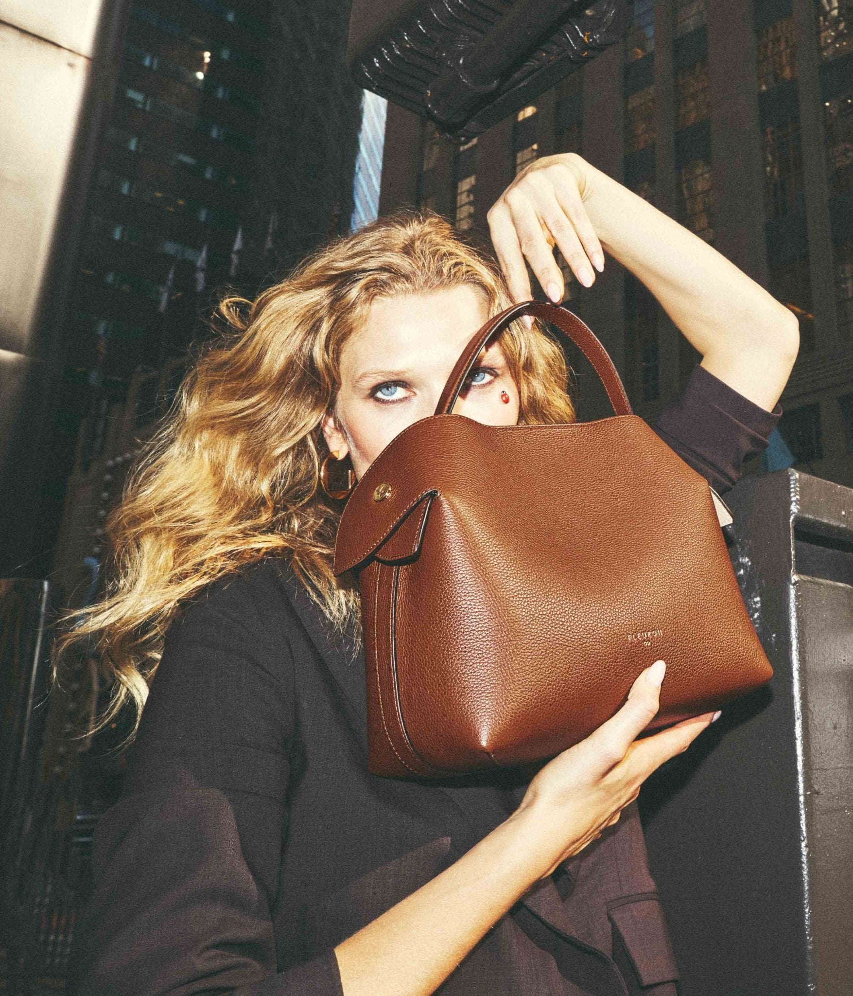 Confectionné à la main dans notre atelier en Italie dans un cuir de veau grainé, agrémenté de finitions dorées, il se porte à la main, à l’épaule et également en bandoulière, se fermant par un aimant automatique sur un intérieur beige. Les côtés se déplient par une fermeture aimantée, afin de laisser passer la bandoulière amovible sur le dessus pour un porté sur l'épaule, ou le laisser tomber élégamment lorsqu'il est porté à la main.
