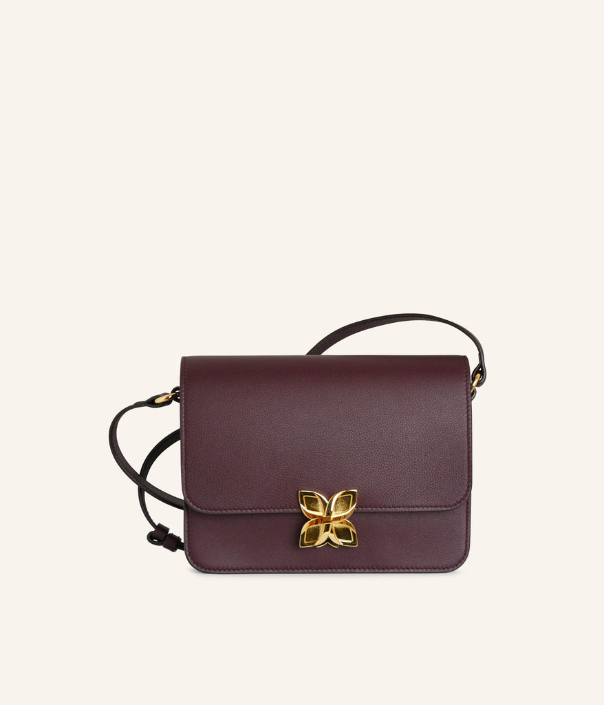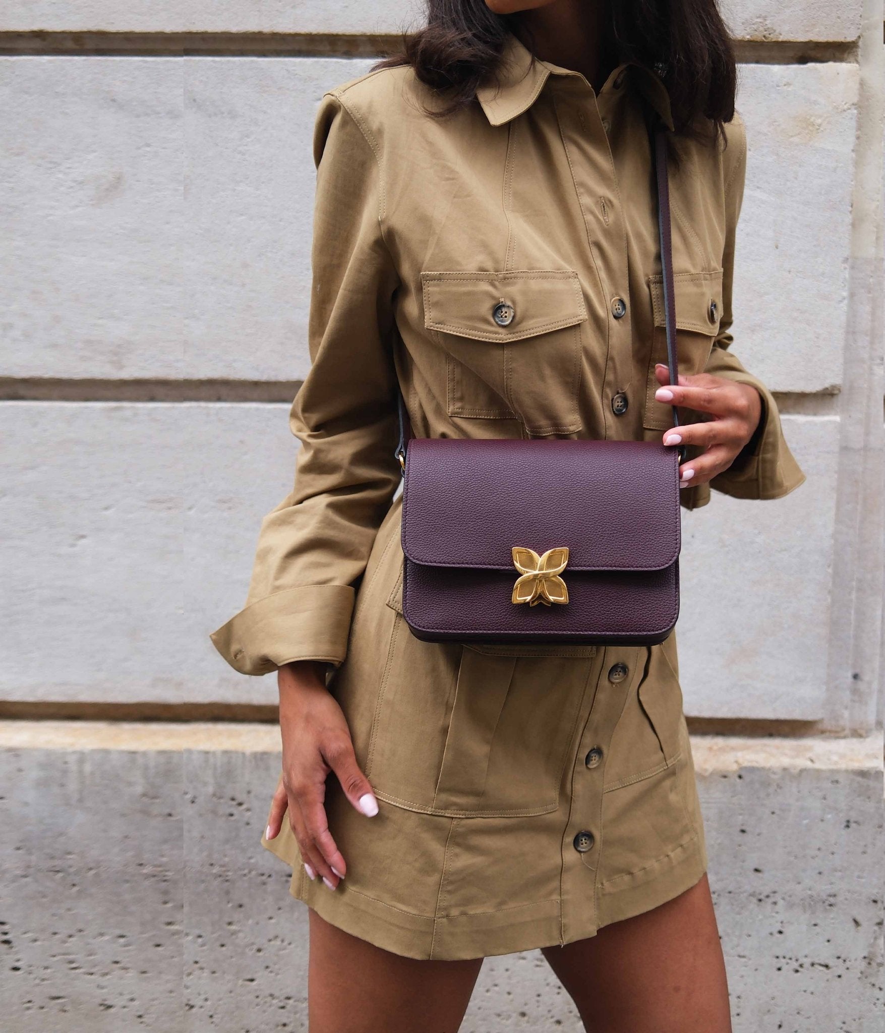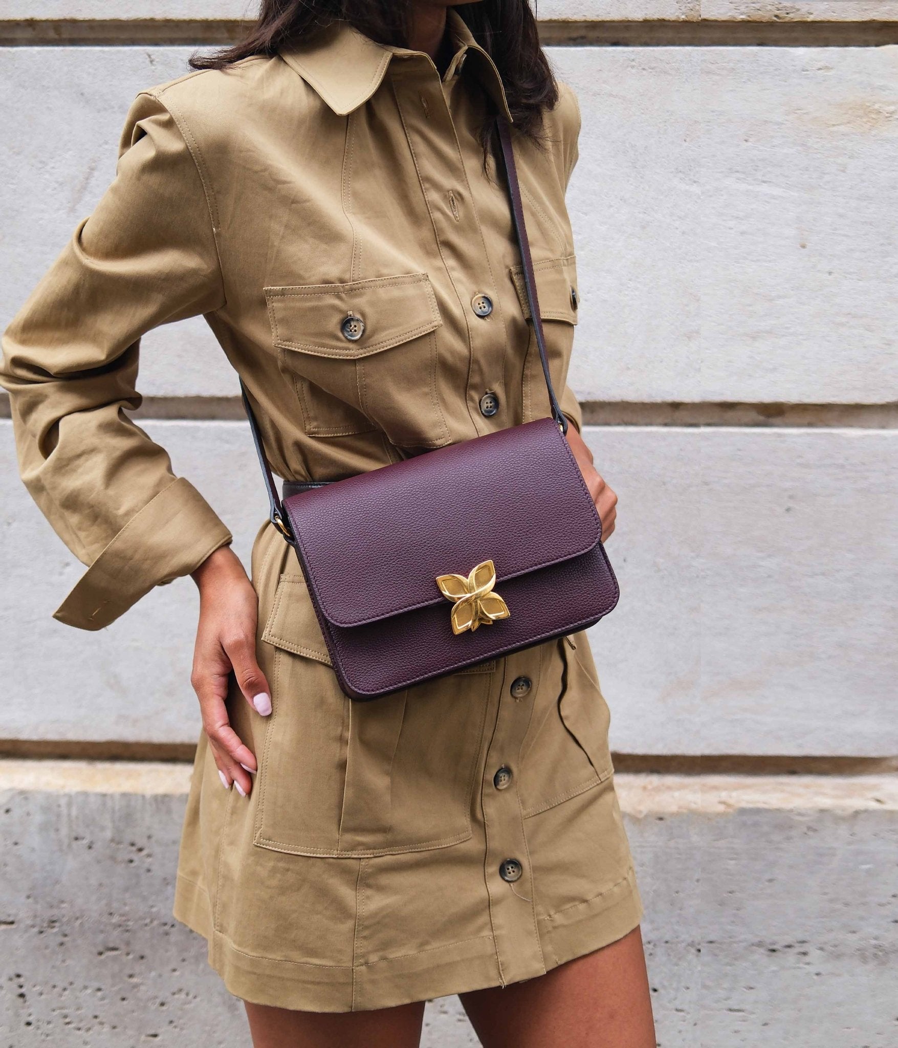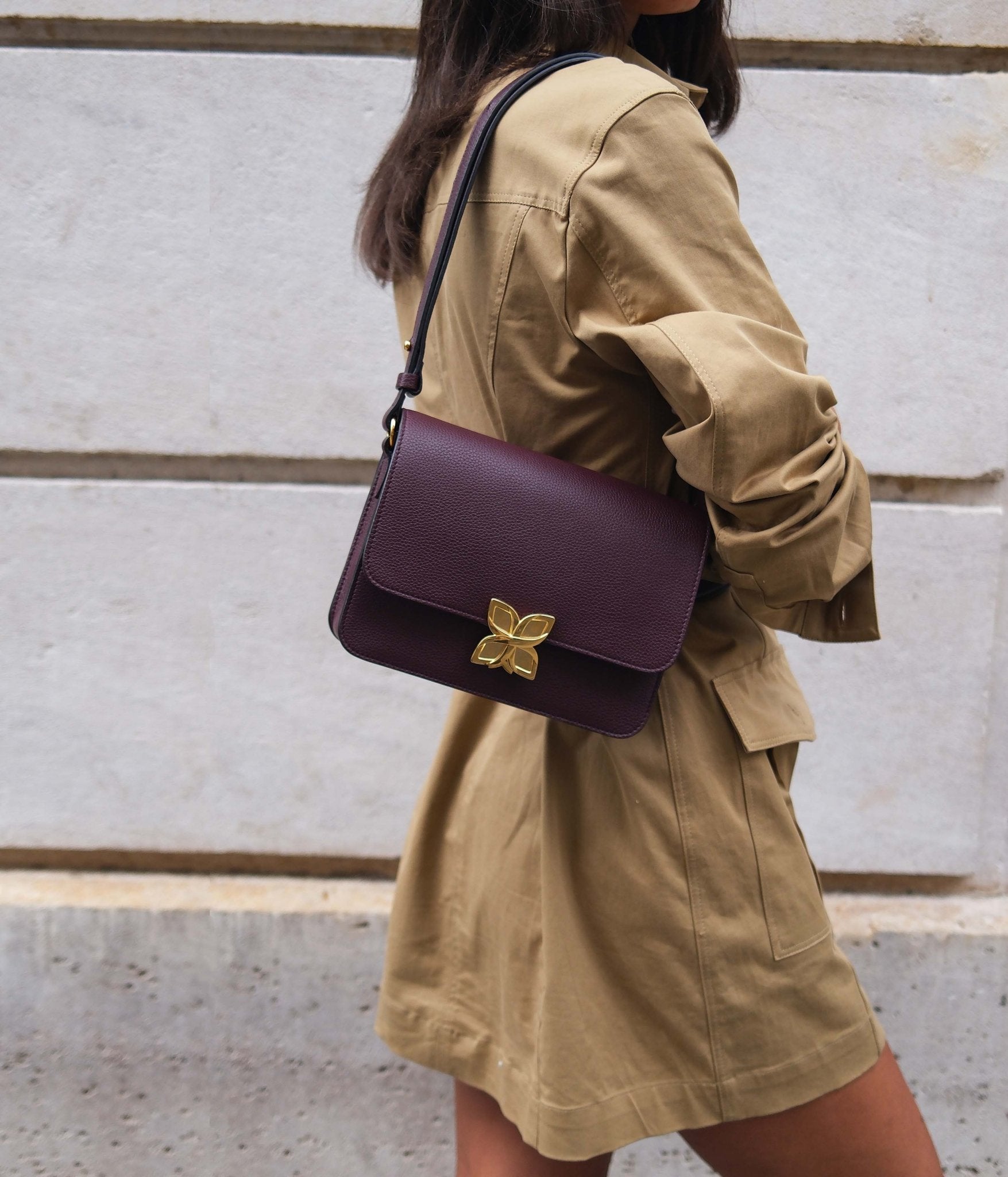 Le fermoir, délicatement inspiré de la fleur d’hortensia, apporte une touche poétique à cette pièce de caractère. L’intérieur, à la fois fonctionnel et raffiné, offre un espace généreux et bien organisé pour accueillir vos essentiels avec aisance. En choisissant Hortensia en Prune, vous optez pour une élégance riche et intemporelle, subtilement marquée par la nuance et la profondeur.