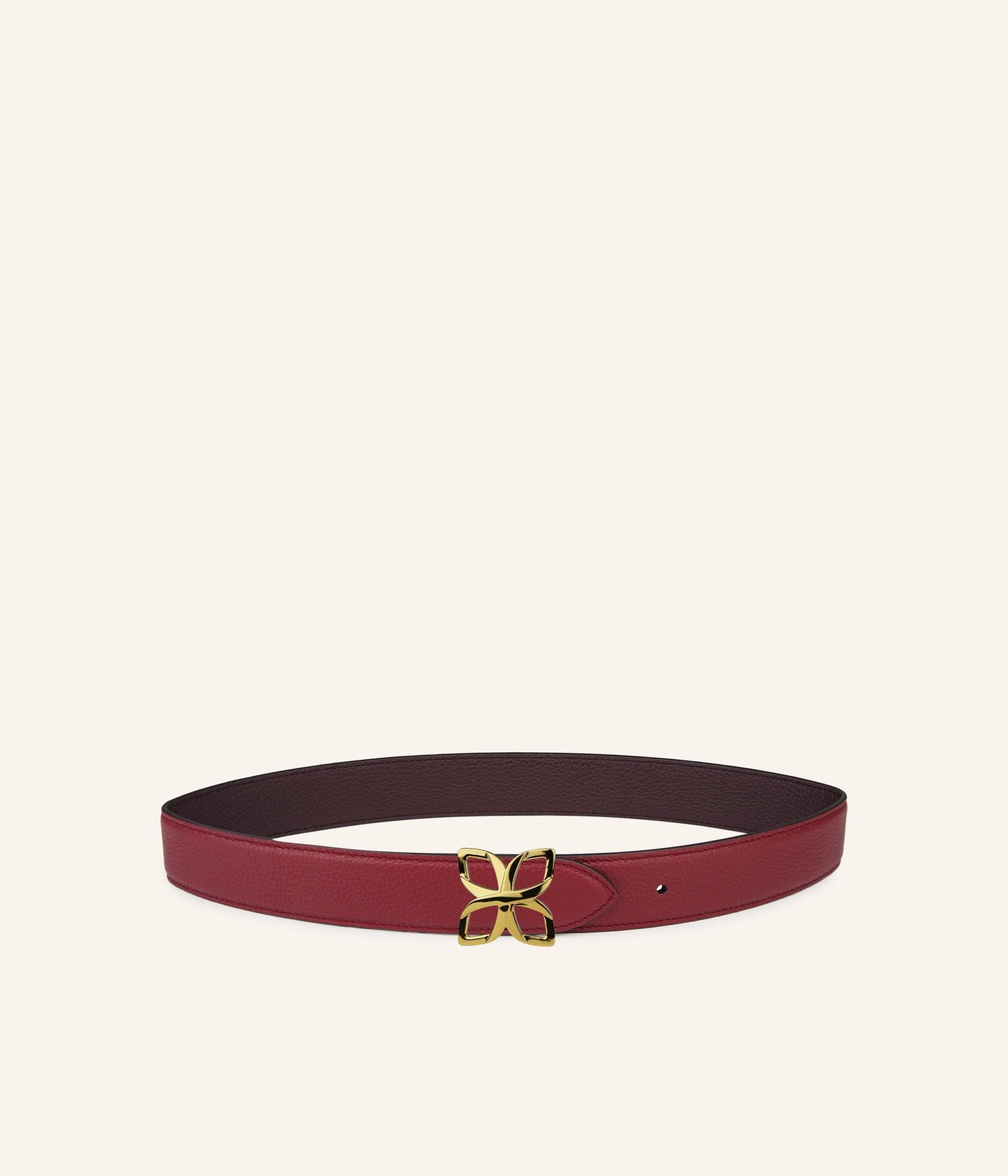 With its deep, feminine tones, the Bordeaux and Prune combination gives the Hortensia Gold Belt a rare intensity and refined confidence. Rich and enveloping, the Bordeaux side pairs beautifully with the soft mystery of Prune, offering two expressions of elegance in one piece.