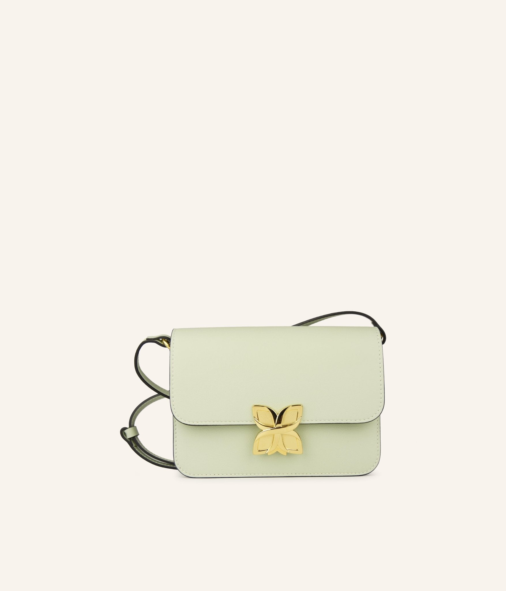 Pair the Mini Hortensia in Water Green with a palette of light, natural tones for an airy and harmonious look. Shades of beige, sand, off-white, or light gray enhance the softness of this delicate hue, creating a modern and understated allure. For a bolder contrast, pair it with touches of terracotta or ochre to add a warm, balanced dimension to your outfit.