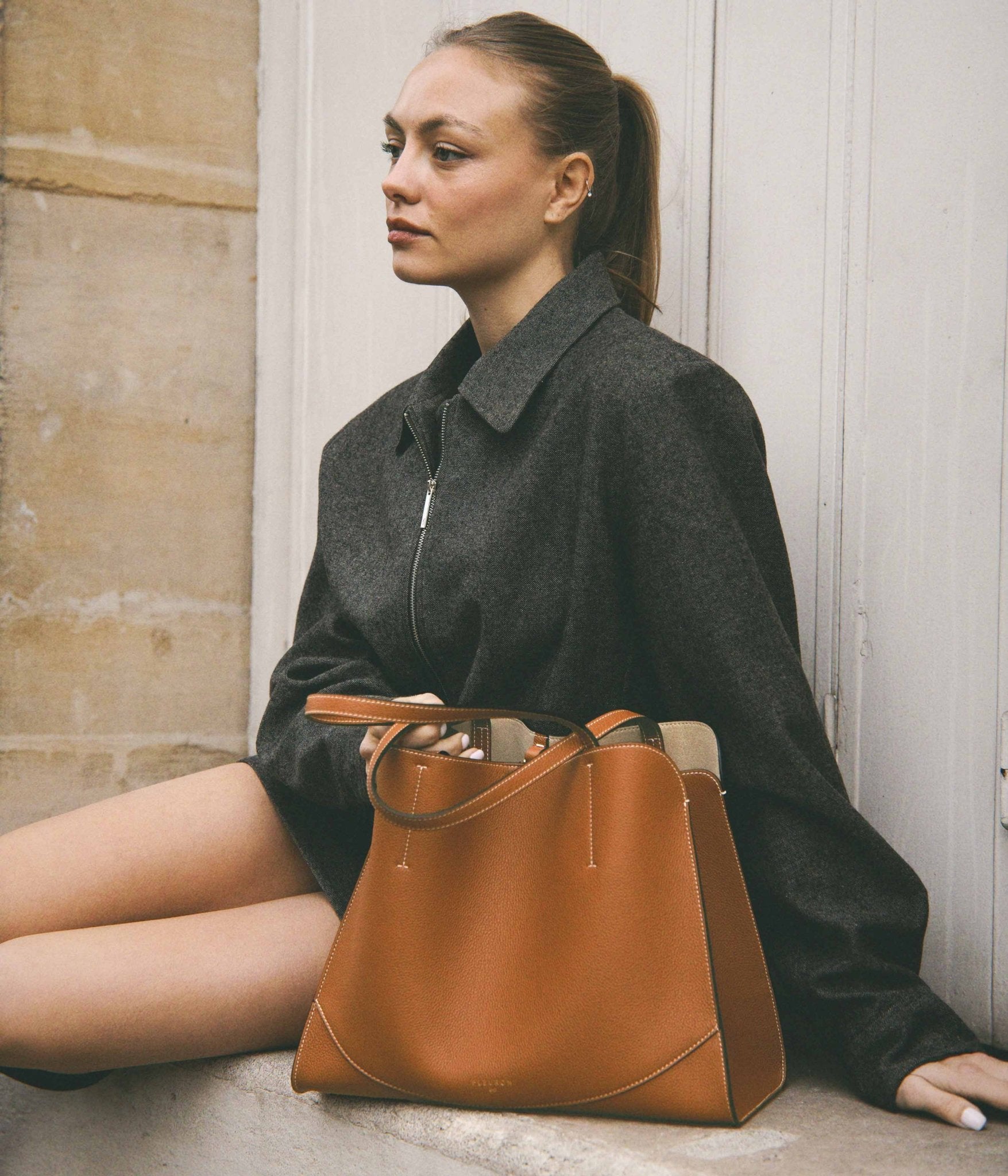 The Medium Oak tote in Caramel grained calfskin stands out with its warm, rich tone, bringing elegance to every outfit. Designed to fit A4 documents, it offers the perfect balance of practicality and sophistication.