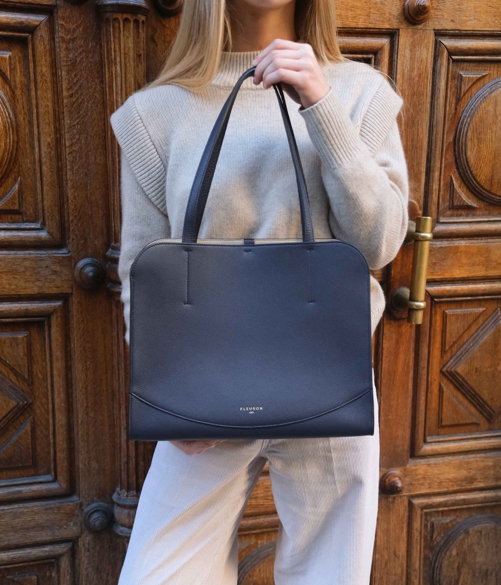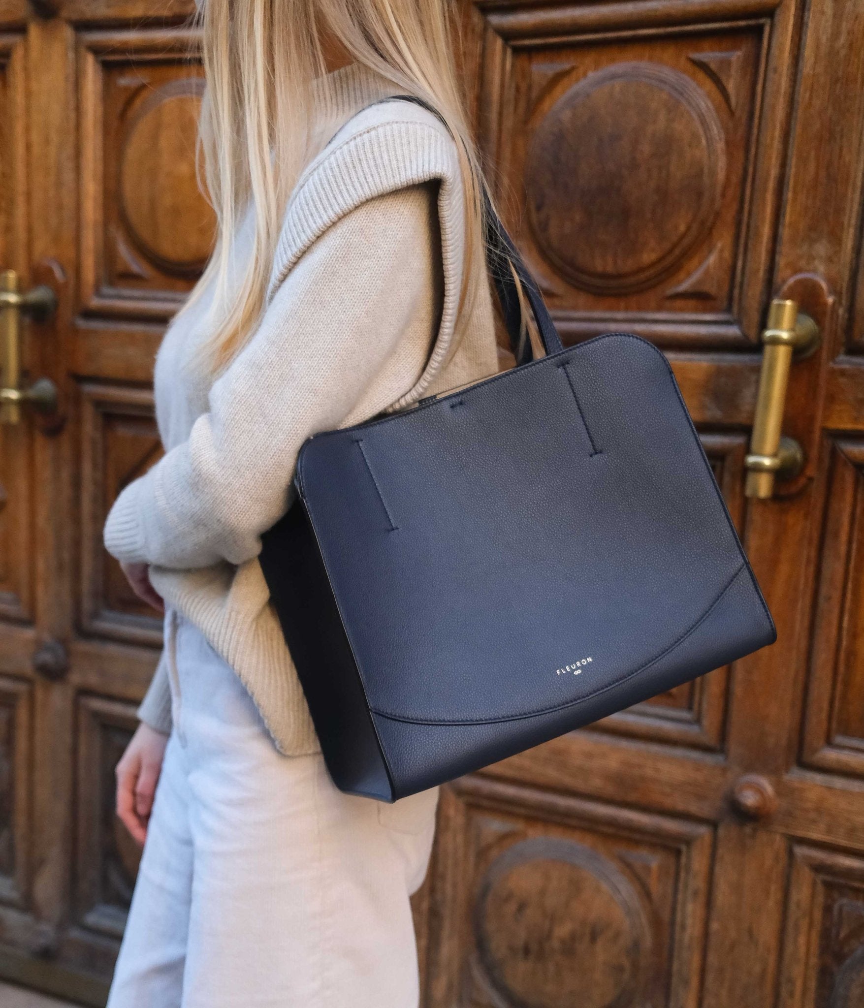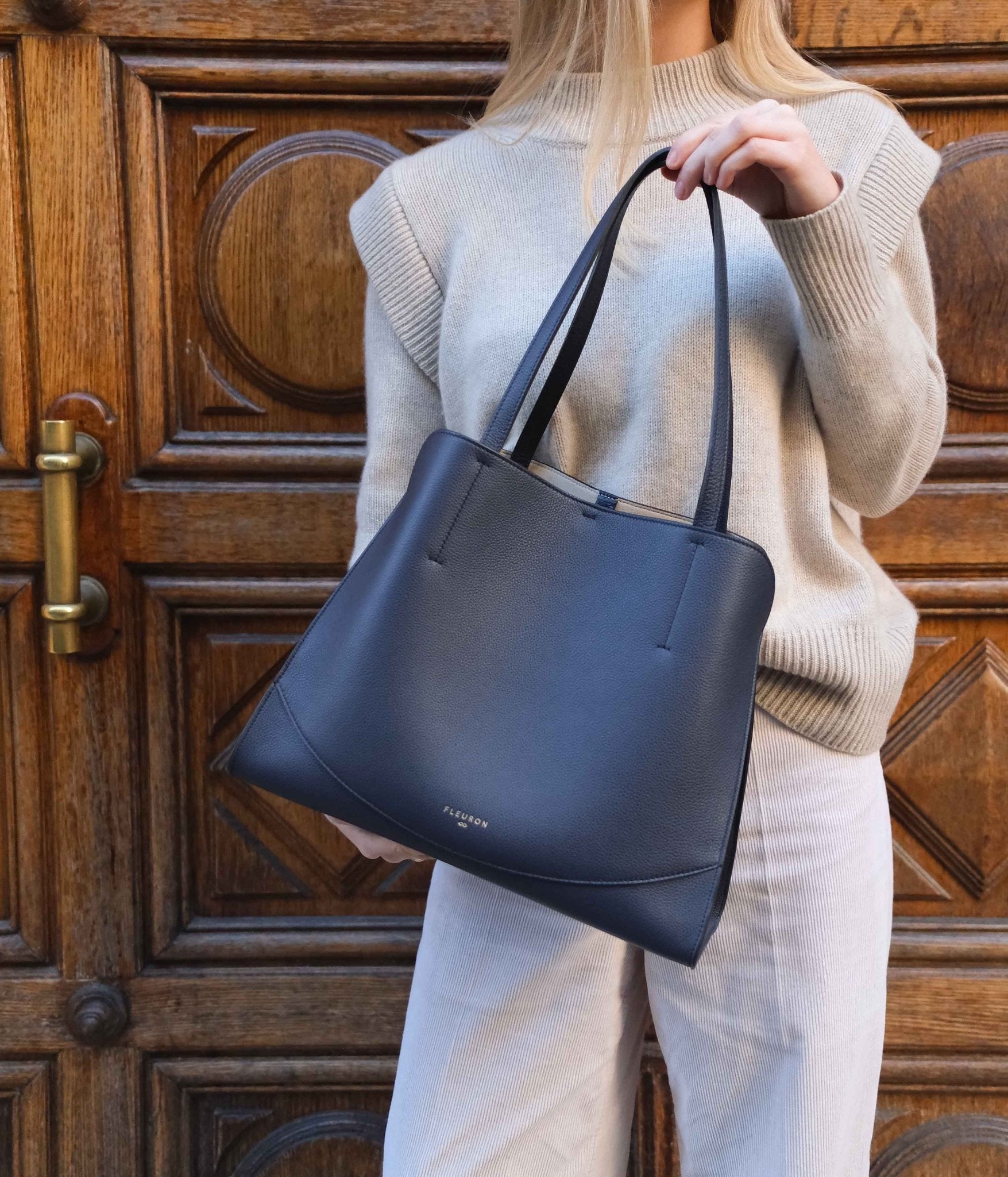 Designed to accompany everyday life with elegance, the Medium Oak tote offers generous volume and balanced proportions, perfect for carrying your essentials with ease. This Bleu Marine version, timeless and refined, pairs effortlessly with understated shades such as light gray, beige, or white, as well as with bolder tones like camel or burgundy, creating either subtle or striking contrasts depending on your mood.