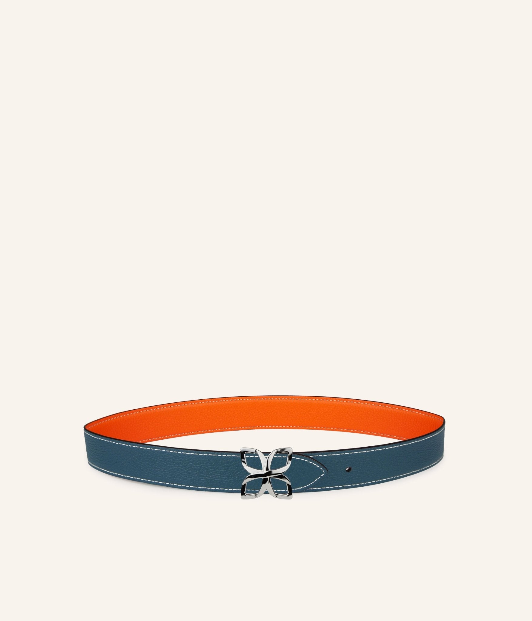 Vibrant and full of contrast, the Hortensia Silver Belt pairs grained Mandarin leather with a reversible Pacific Blue side. A bold and lively combination, blending radiant warmth with cool intensity, it brings a fresh, modern edge to any look.
