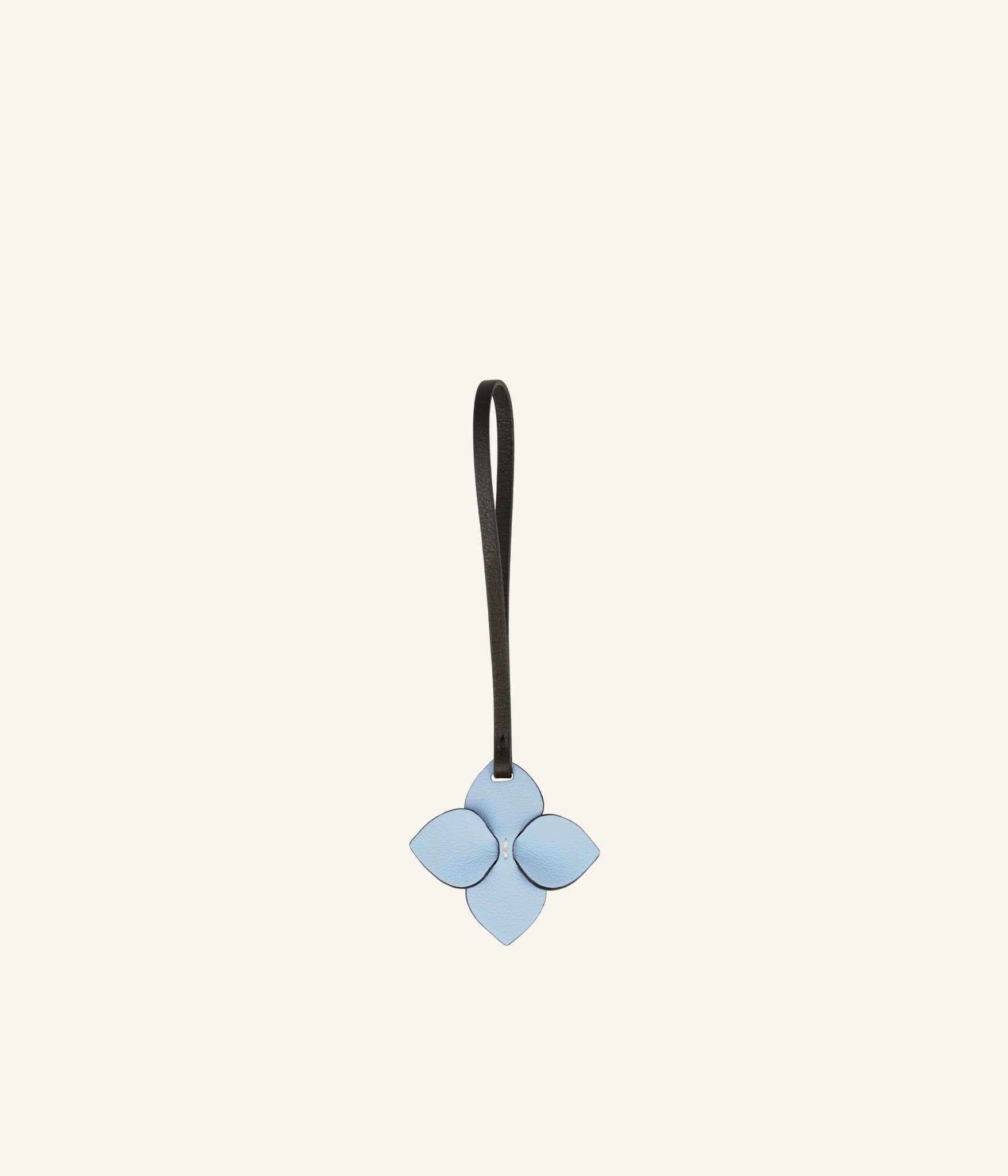 With its fresh and luminous Bleu Glacier shade, the Mini Sia adds a modern touch of softness to your bag. This light, frosted blue pairs beautifully with neutral or pastel tones. Handcrafted in Italy from smooth calf leather, it attaches easily to a handle or strap. As it sways gently, it evokes the lightness of an intertwined flower.