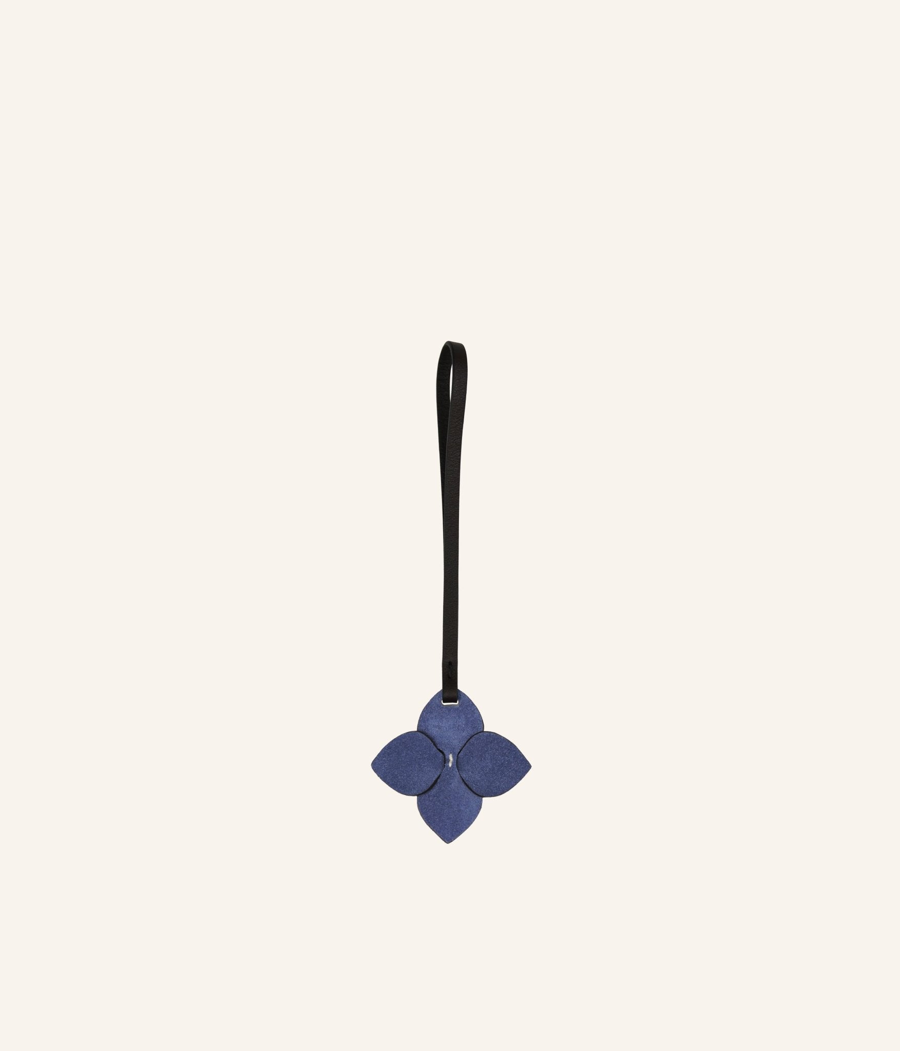 A tribute to the poetry of nature. This mini version of the leather hydrangea flower, delicately intertwined, captures the subtle grace of movement, offering timeless elegance imbued with refinement. With its contemporary blue-toned shade, the Mini Sia in Calf Suede Jeans brings a modern and elegant touch to your bags. Handcrafted in Italy, it attaches easily to a handle or strap, adding a refined and timeless detail. When paired with an Oak tote, it sways gently with your movements, evoking the delicacy of an intertwined flower and adding character to every silhouette.