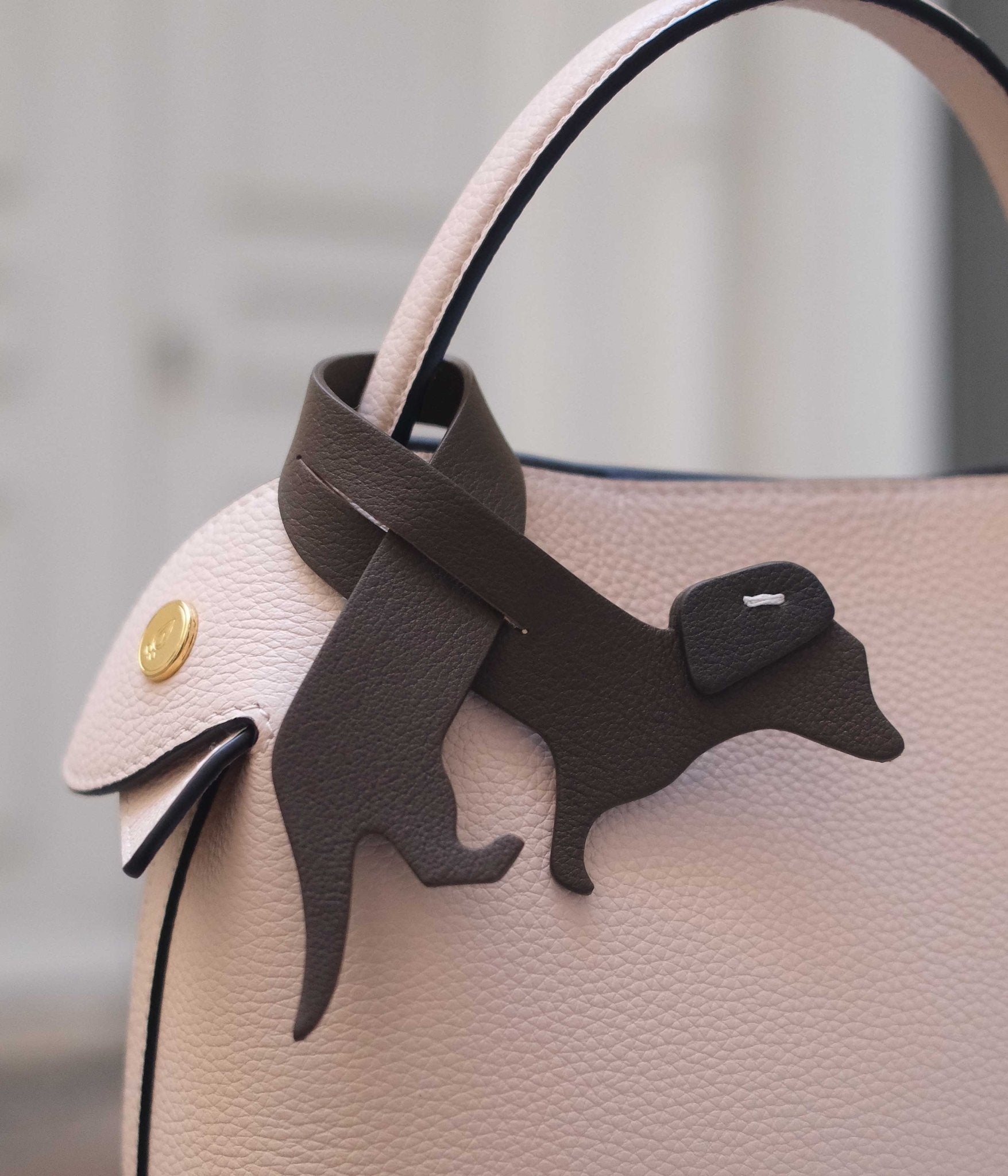 With its playful charm and endearing gaze, the Dachshund Charm captures the warmth and loyalty of this beloved companion. A refined detail that adds a touch of character and affection to every moment. Our Teckel charm in Chocolat Noir, with its deep shade and charming design, brings a touch of refined character to your bag. Handcrafted in Italy from exceptional grained calf leather, it attaches easily to a handle or strap, adding an elegant and timeless accent to your accessories.