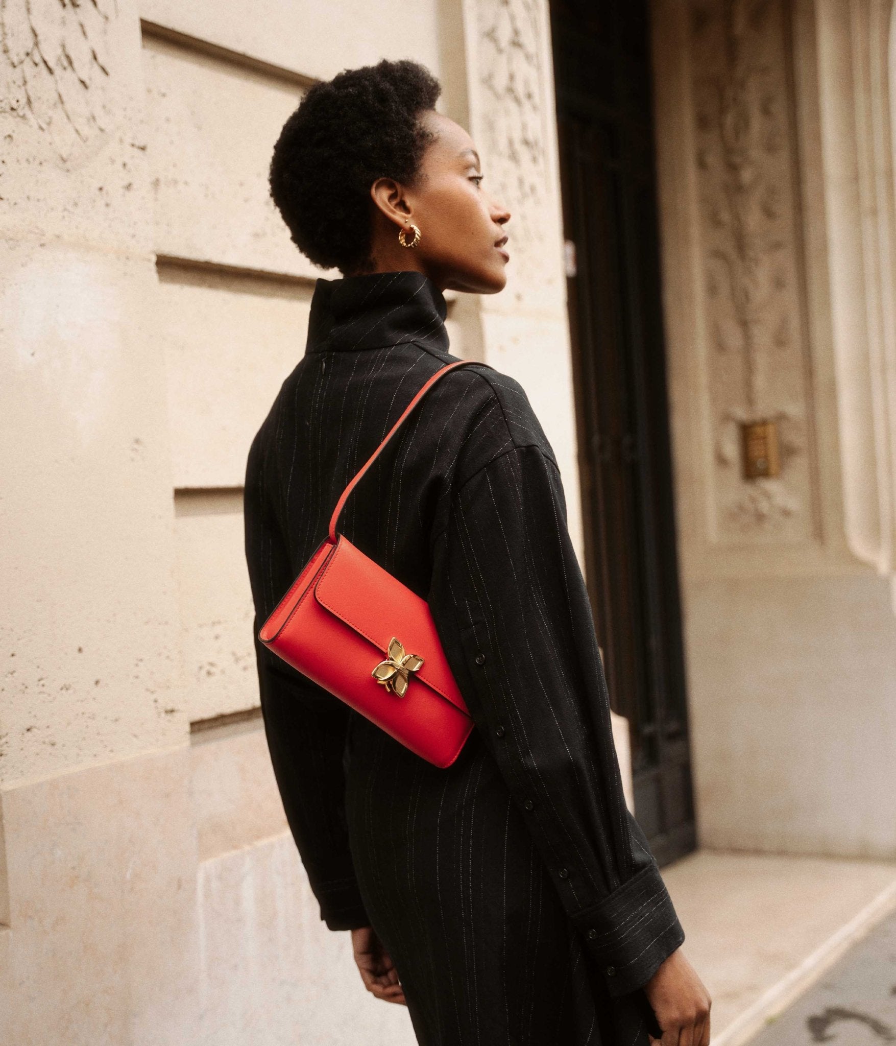 Step into the bold elegance of the Hortensia Clutch, crafted in smooth calf leather in a striking Goji Berry shade. Meticulously made in our Italian ateliers, this refined version of the iconic Hortensia bag brings a streamlined silhouette and a burst of character to any outfit.