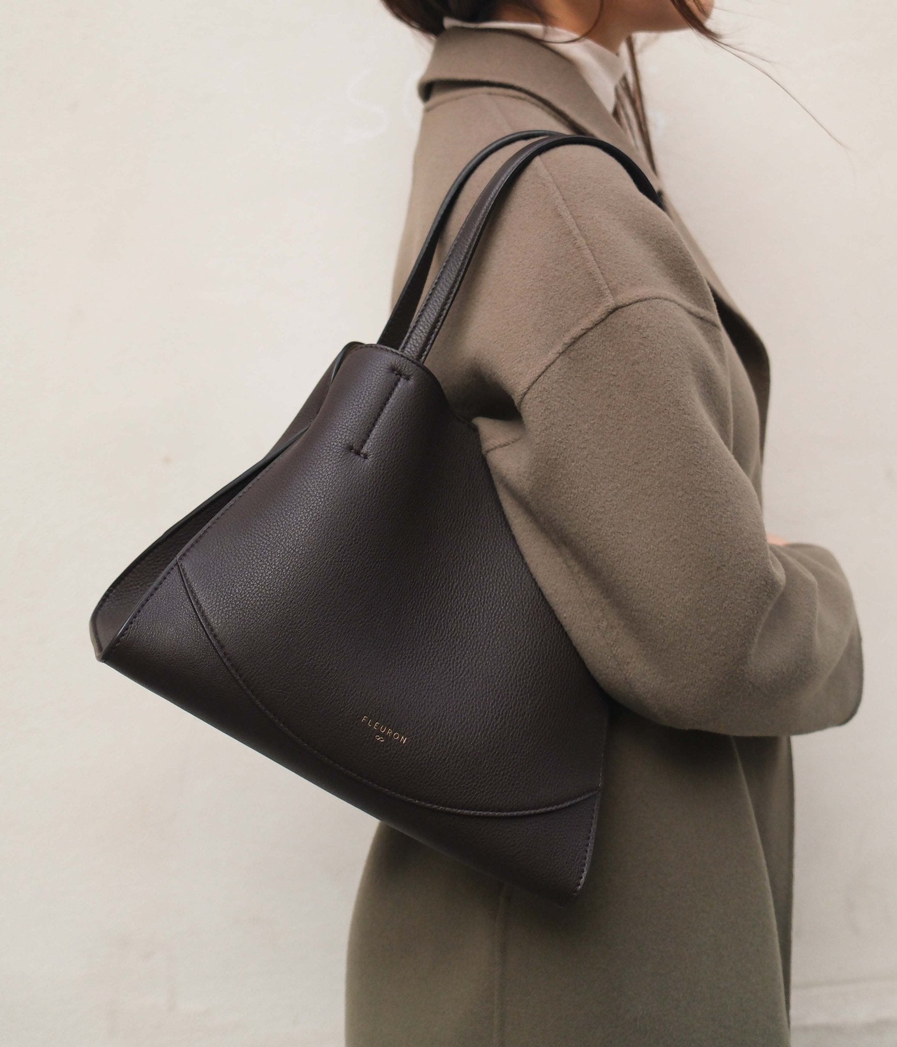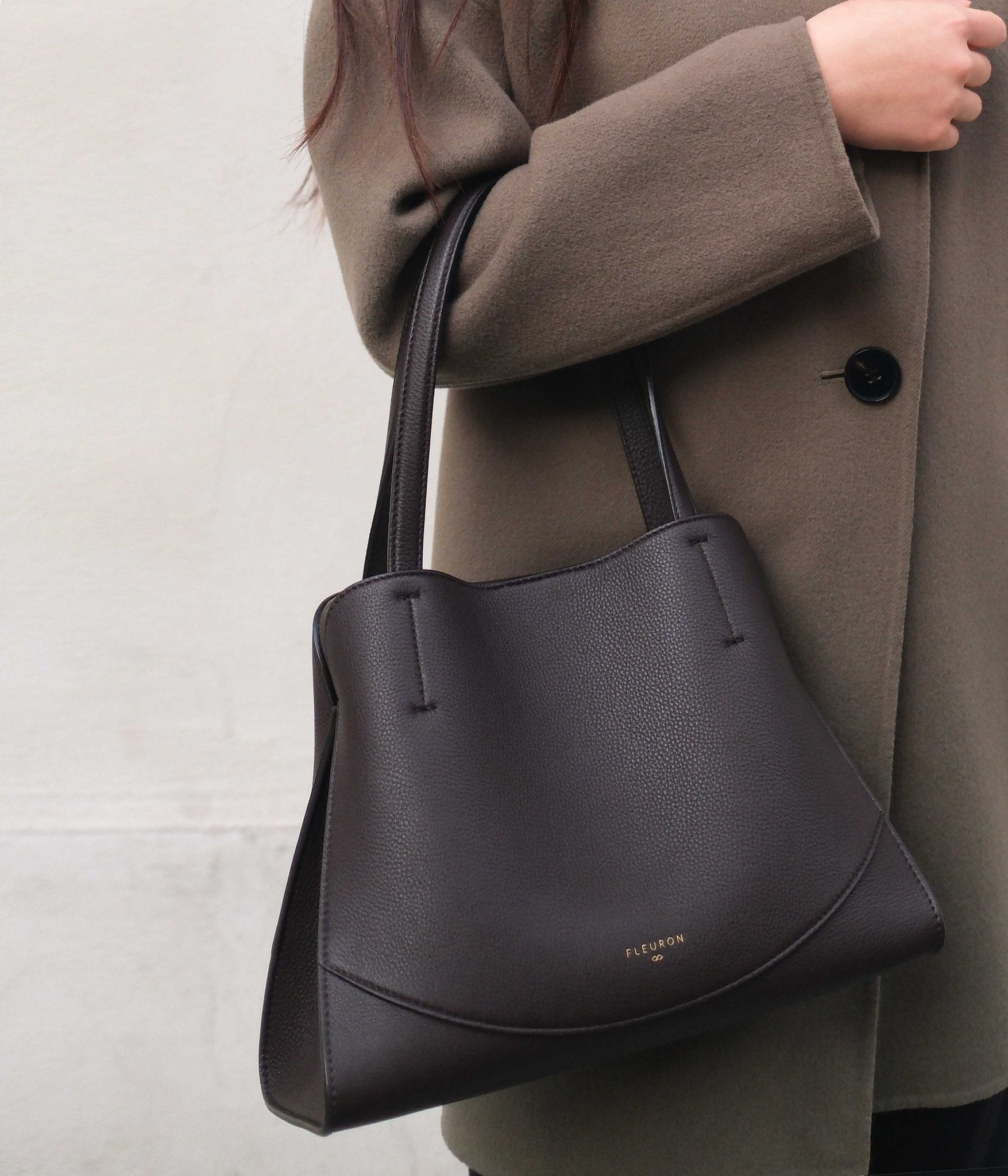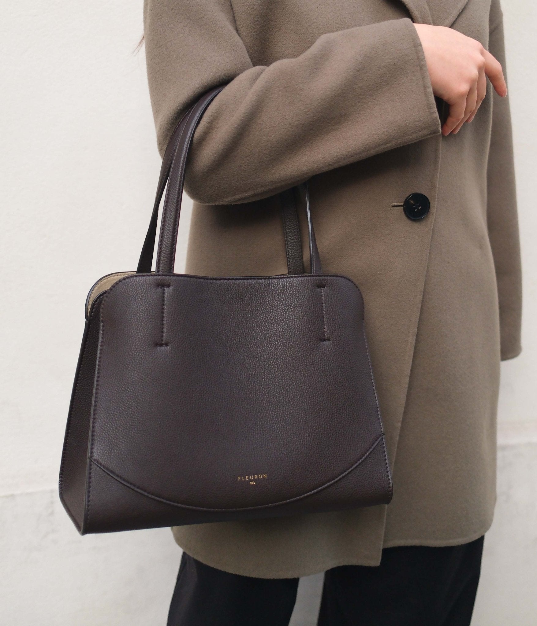 Its Espresso shade, deep and intense, pairs naturally with understated tones such as cream, camel, or anthracite grey for a timeless silhouette. For a more contemporary contrast, it also works beautifully with shades like midnight blue, olive green, or black.