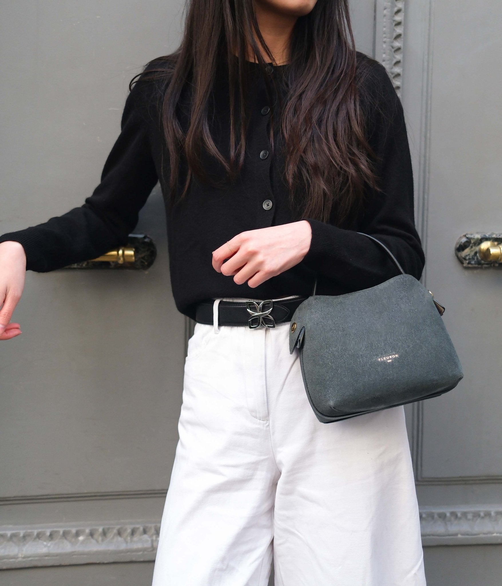 The Mini Swann in Calf Suede Orage, designed in Paris and handcrafted in Italy, stands out with its contemporary elegance and unique simplicity. Its compact size makes it the perfect companion to carry your essentials while adding a modern touch to any outfit.