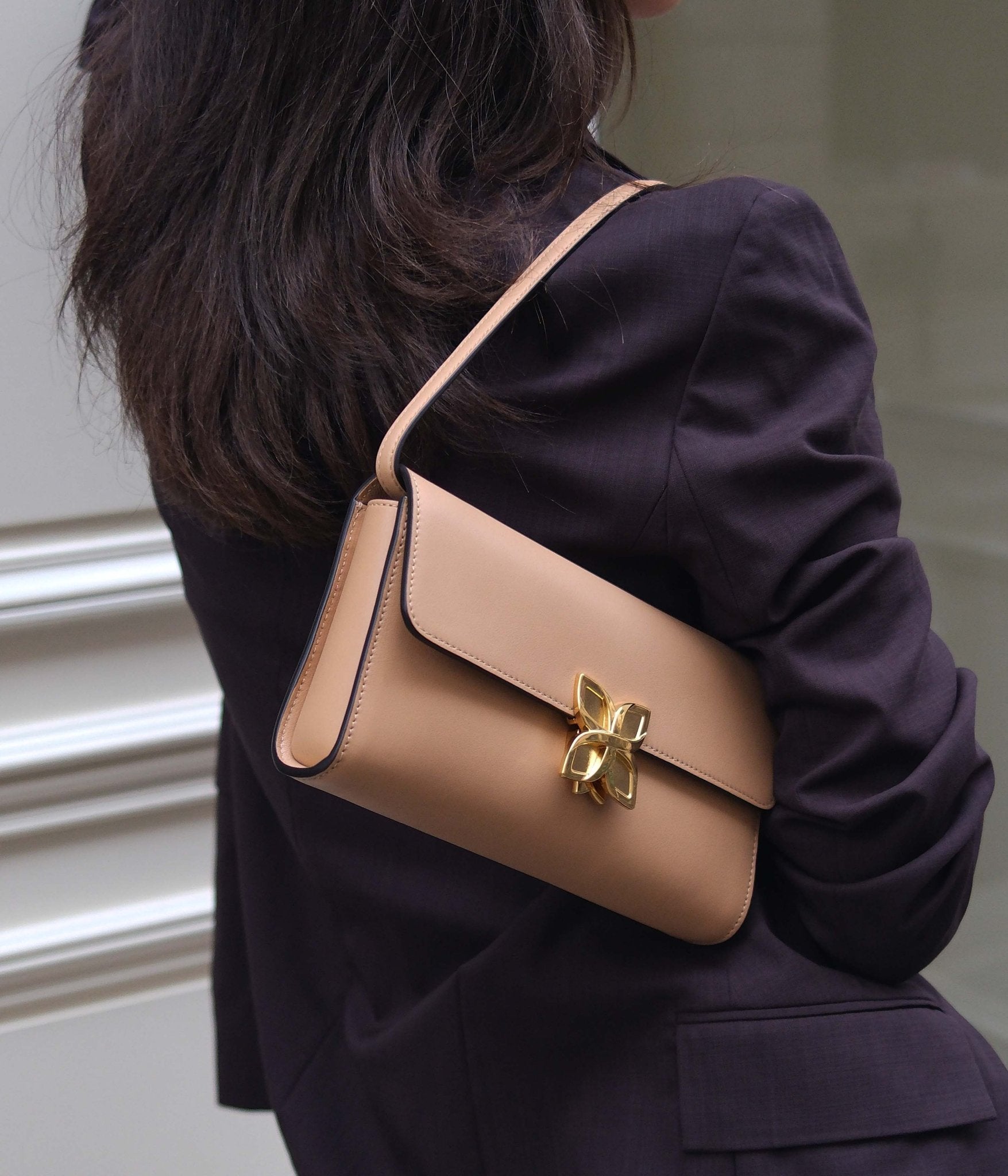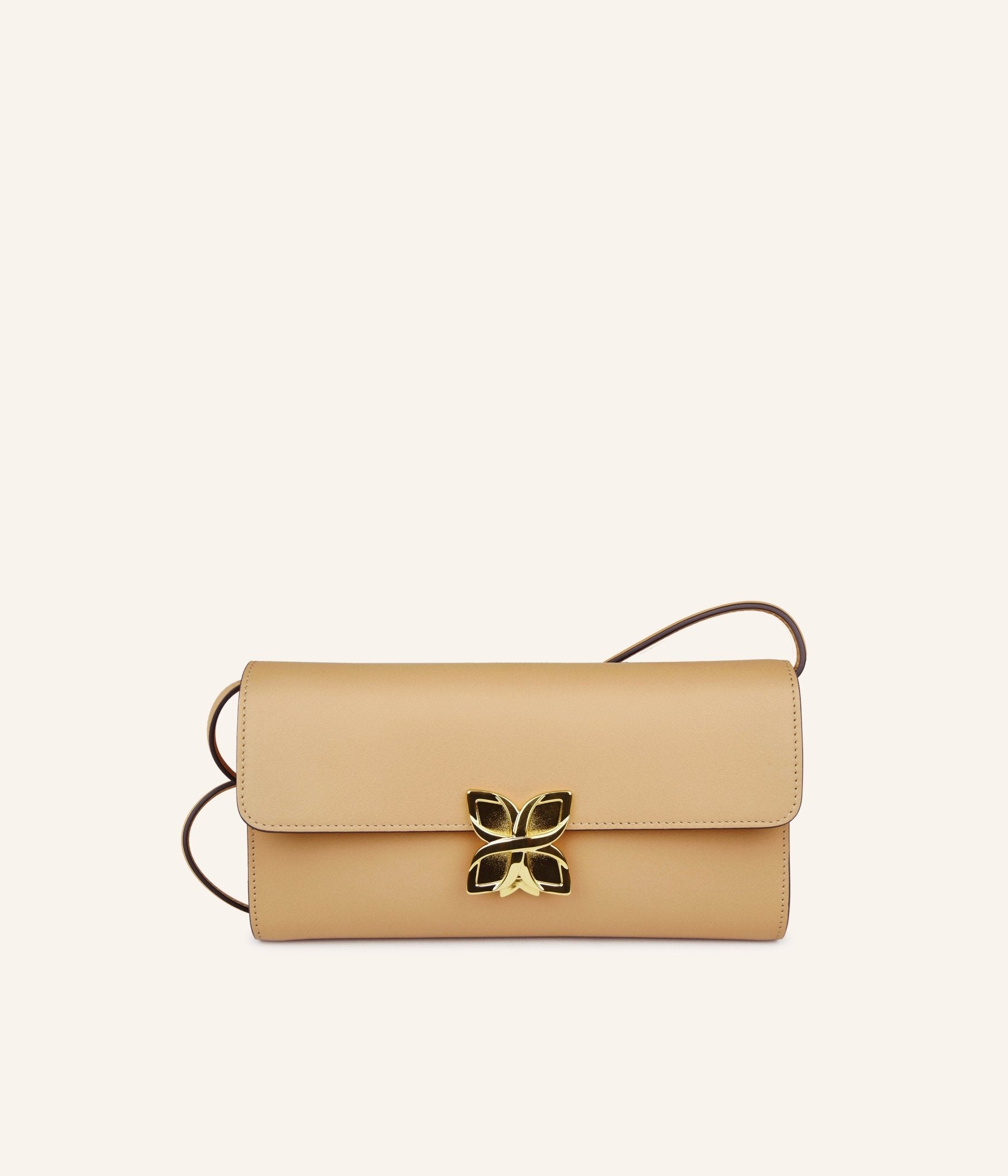 Step into warm elegance with the Hortensia Clutch, crafted from smooth calf leather in a soft Cookie shade. Carefully made in our Italian workshops, this refined piece reimagines the iconic Hortensia bag in a sleek, compact format designed to complement your outfits with subtle sophistication.