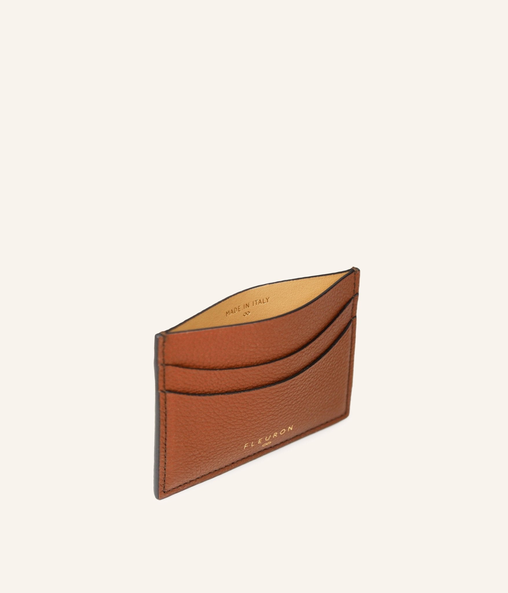 L'extérieur : cuir de veau grainé pleine fleur et cuir de veau lisse pleine fleur, 4 emplacement cartes