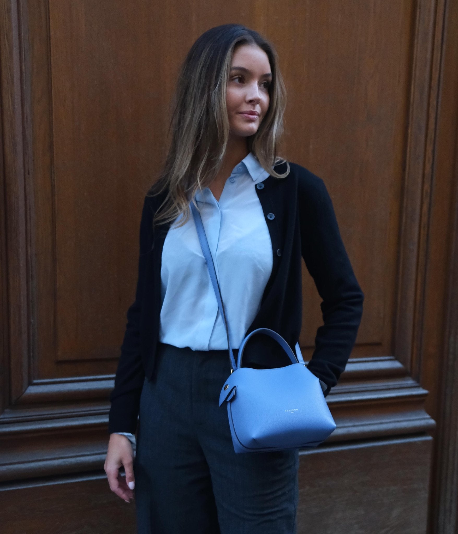 Le Mini Swann en cuir de veau grainé Bleu Jeans apporte une touche moderne et lumineuse à vos tenues. Sa teinte bleutée, à la fois douce et profonde, s’associe facilement à des tons neutres comme l’ivoire, le beige ou le gris clair, et crée un contraste contemporain avec des nuances plus soutenues comme le bleu pâle ou des accessoires métallisés.