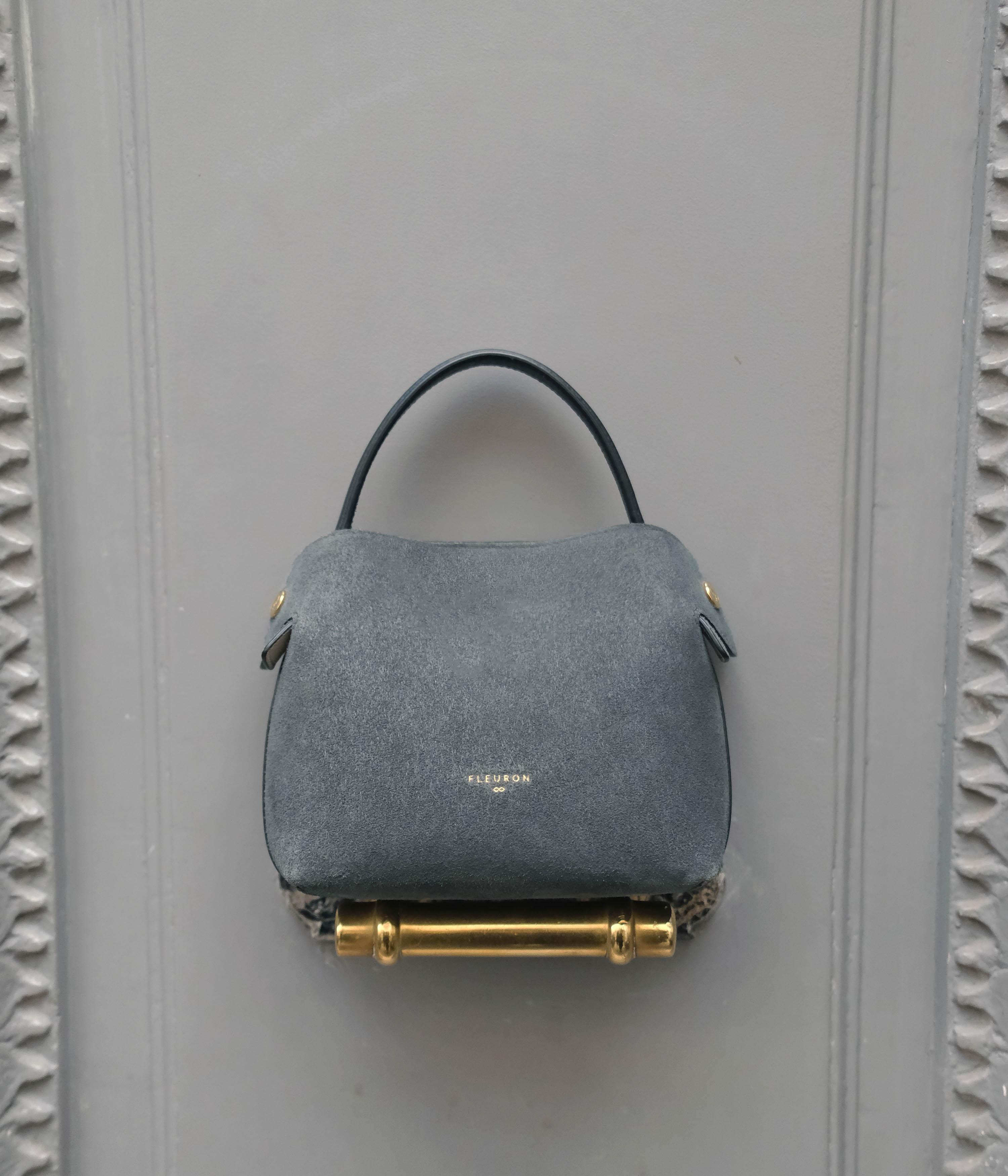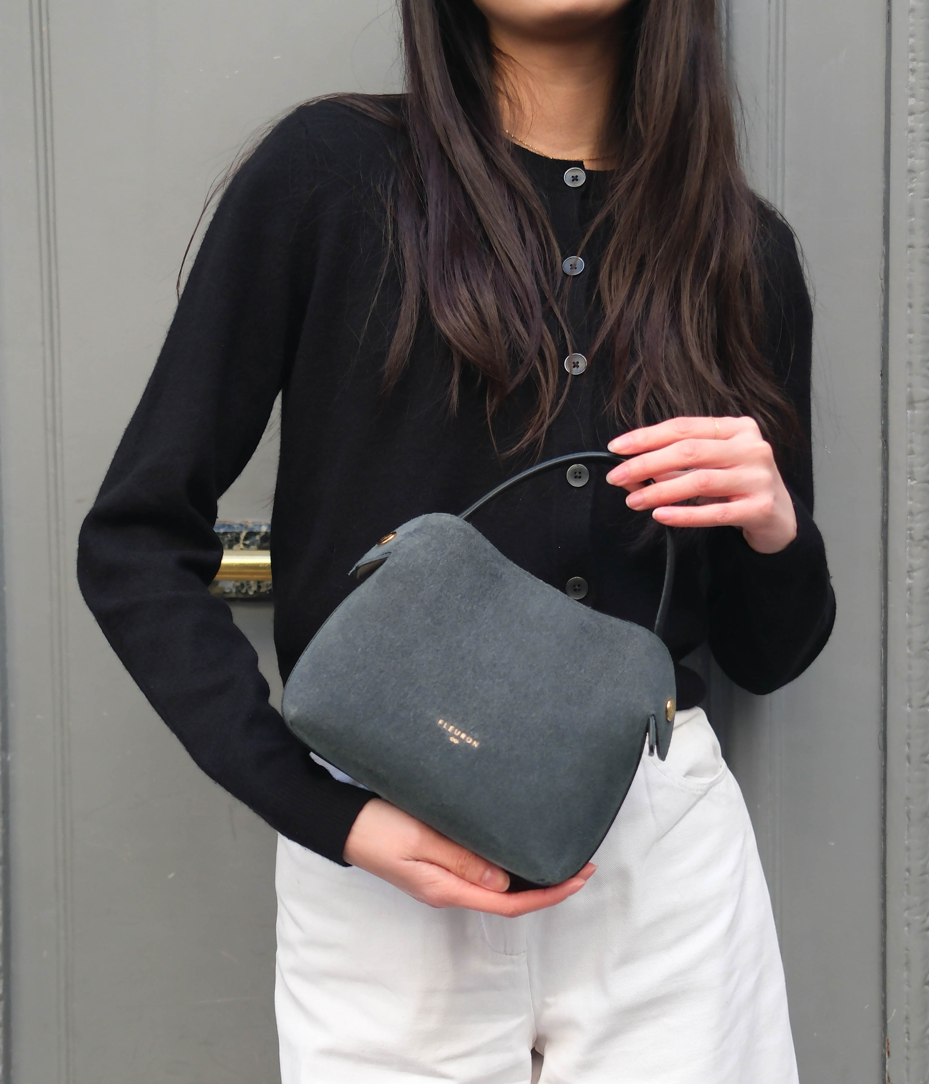 Le Mini Swann en Suède de veau Orage, imaginé à Paris et façonné en Italie, séduit par son élégance contemporaine et sa sobriété unique. Sa taille compacte en fait l’allié idéal pour transporter vos essentiels tout en ajoutant une touche moderne à vos tenues.