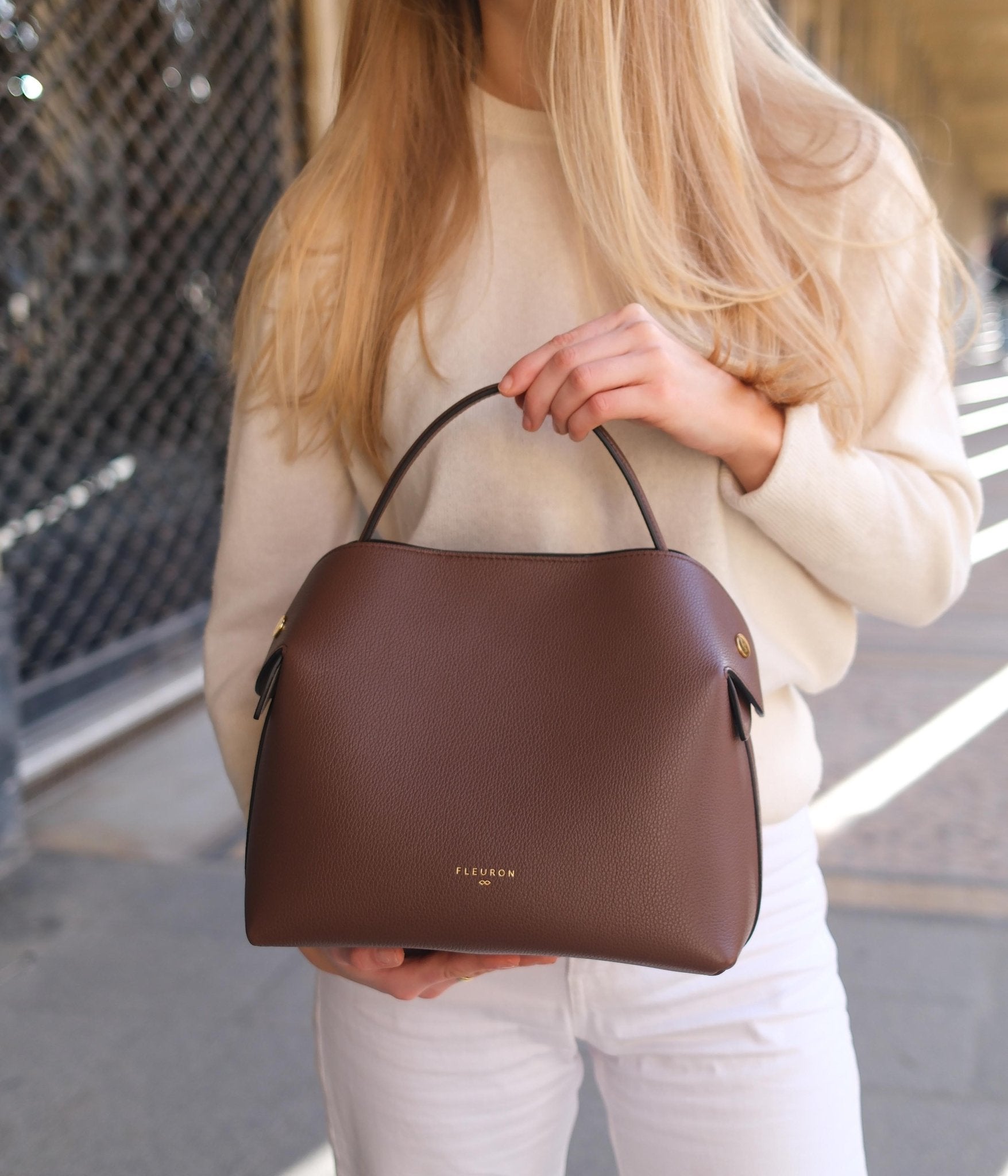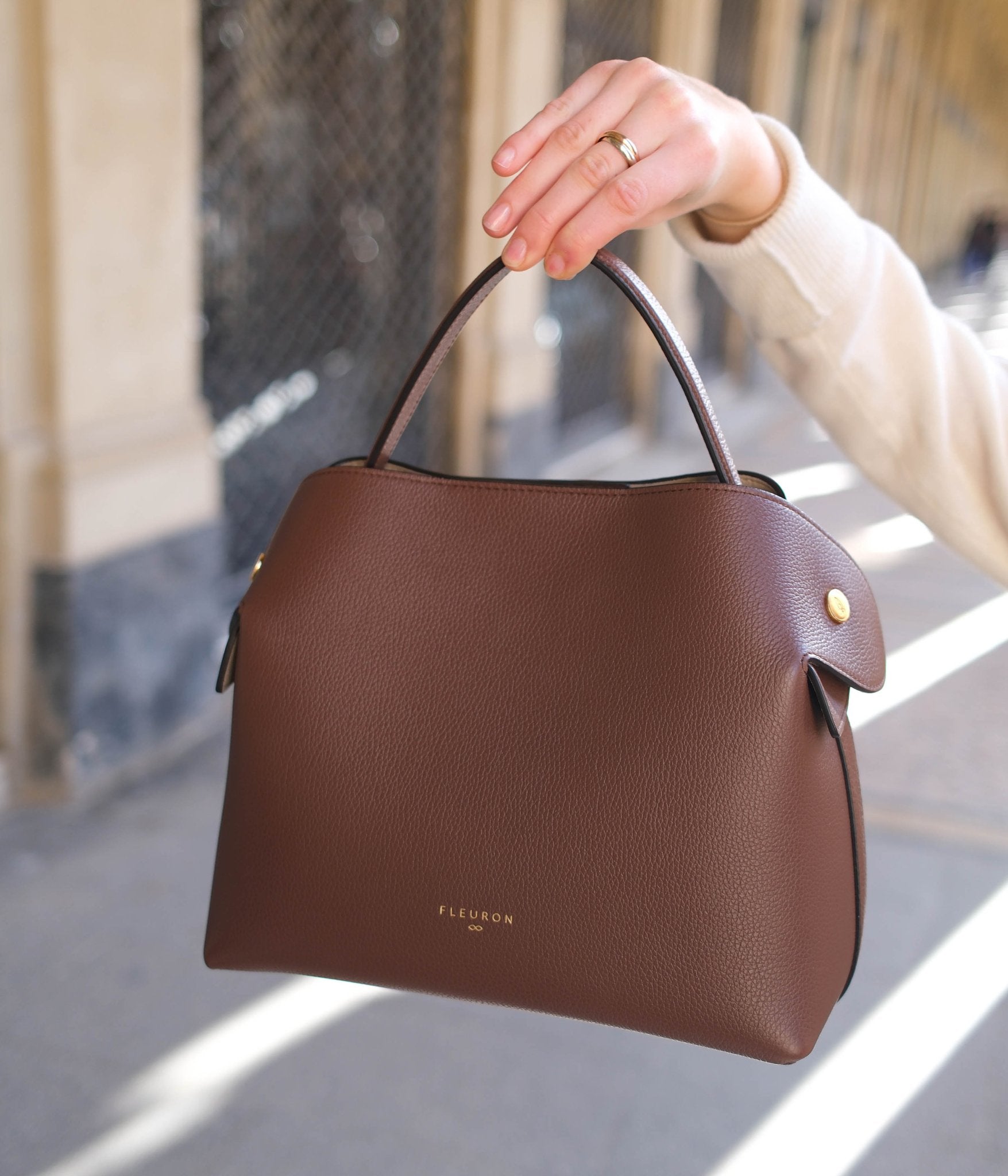 Confectionné à la main dans notre atelier en Italie dans un cuir de veau grainé, agrémenté de finitions dorées, le Swann se porte à la main, à l’épaule ou en bandoulière. Il se ferme par un aimant automatique sur un intérieur beige. Les côtés se déplient grâce à un système aimanté, permettant à la bandoulière amovible de passer sur le dessus pour un porté épaule, ou de tomber librement lorsqu’il est porté à la main.