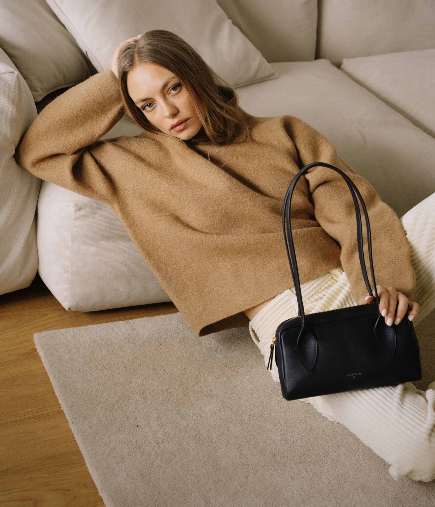 Ses finitions dorées rehaussent subtilement la noblesse du cuir lisse, tandis que l’intérieur beige crée un contraste délicat à chaque ouverture. Léger et compact, le Mini Bambou se porte sous le bras ou à l’épaule grâce à sa bandoulière fine et discrète. Sa fermeture éclair sécurise vos essentiels, en faisant un compagnon idéal au quotidien pour celles qui recherchent un accessoire aussi pratique qu’élégant.