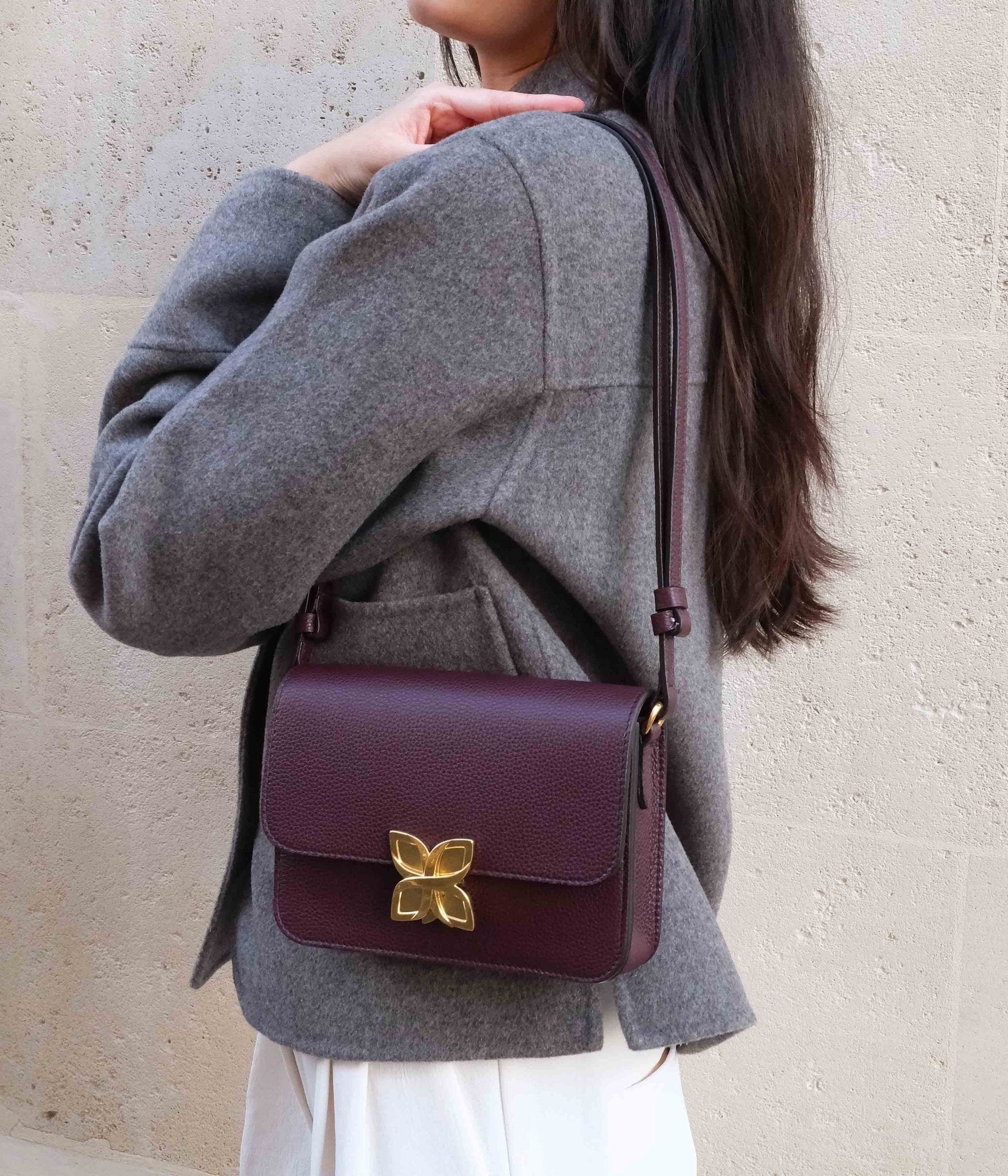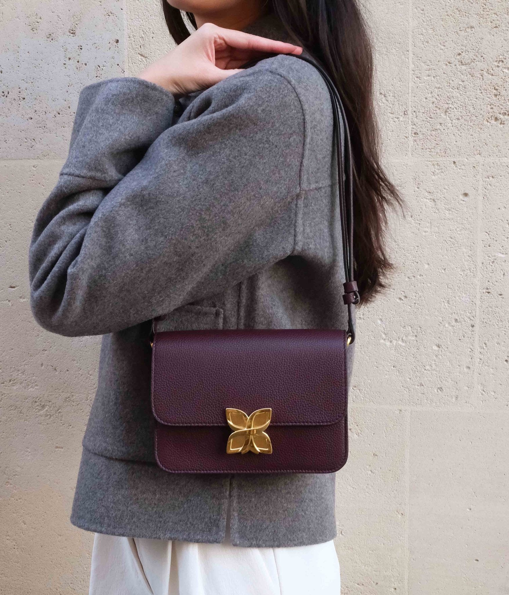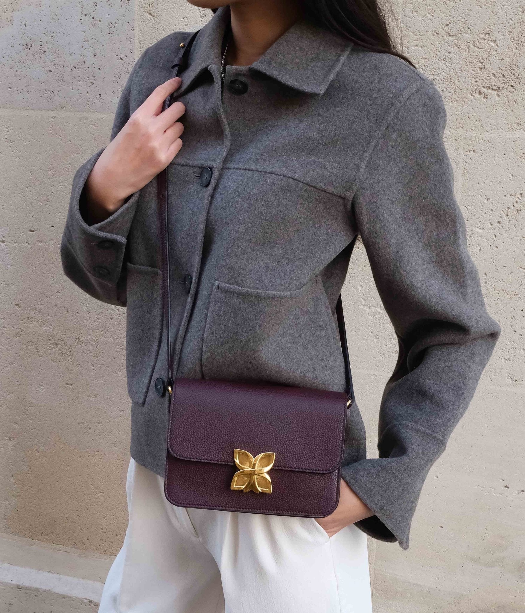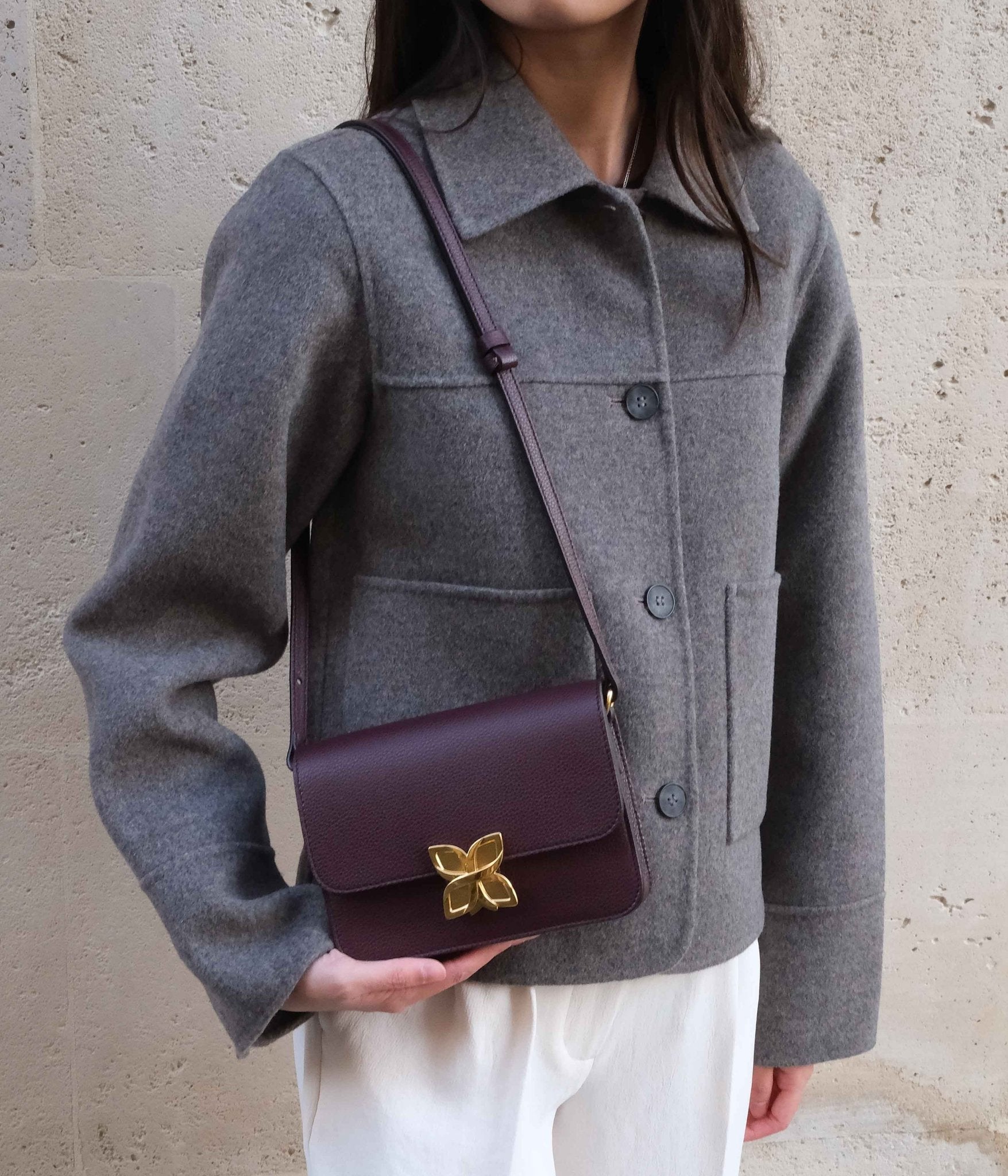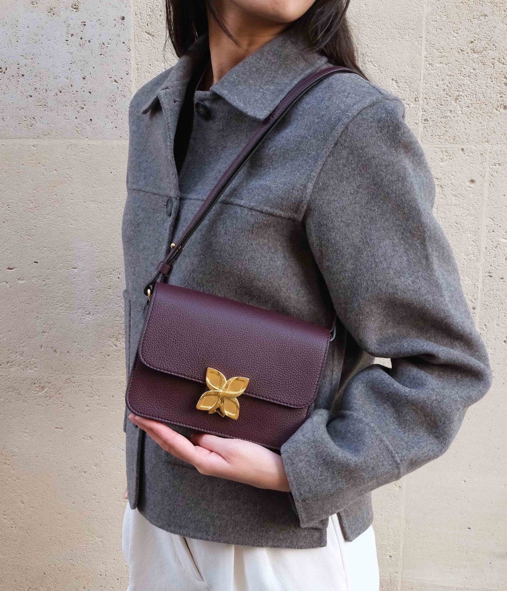 Découvrez l’élégance profonde du Mini Hortensia en couleur Prune, enveloppé dans un cuir de veau au grain fin qui reflète toute la richesse de cette teinte à la fois mystérieuse et raffinée. Confectionné avec un soin exceptionnel dans nos ateliers italiens, cet accessoire incarne l’excellence du savoir-faire artisanal et l’attention portée à chaque détail.