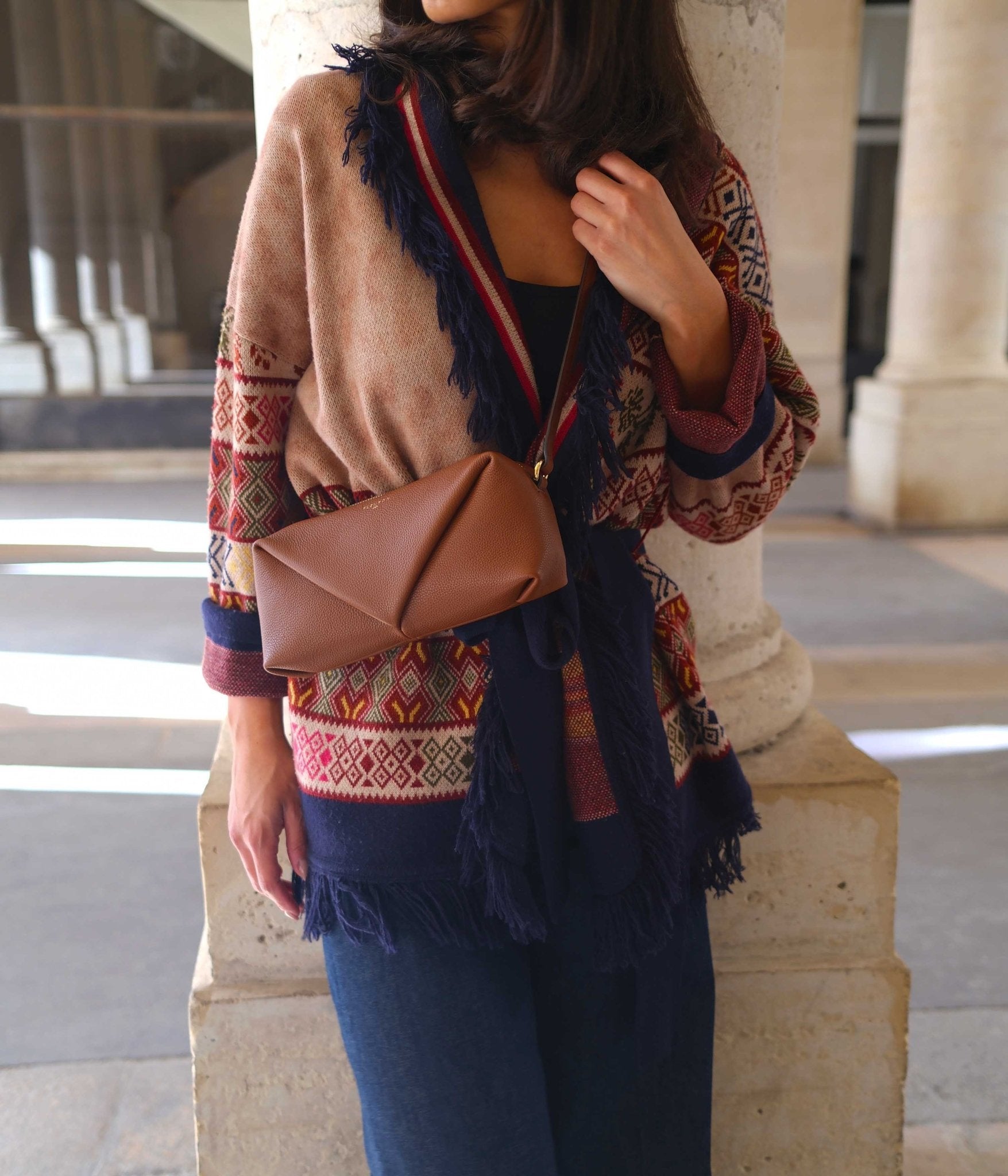 Sa bandoulière ajustable permet différents styles de porté: en pochette, à l’épaule ou en bandoulière courte selon l’occasion. Le Trinity en Marron se marie parfaitement avec des nuances chaleureuses comme le beige, le camel ou le terracotta, pour une allure douce et harmonieuse. Il crée également de superbes contrastes avec des teintes plus audacieuses comme le bleu marine, le gris anthracite ou l’émeraude, pour une silhouette sophistiquée et affirmée.