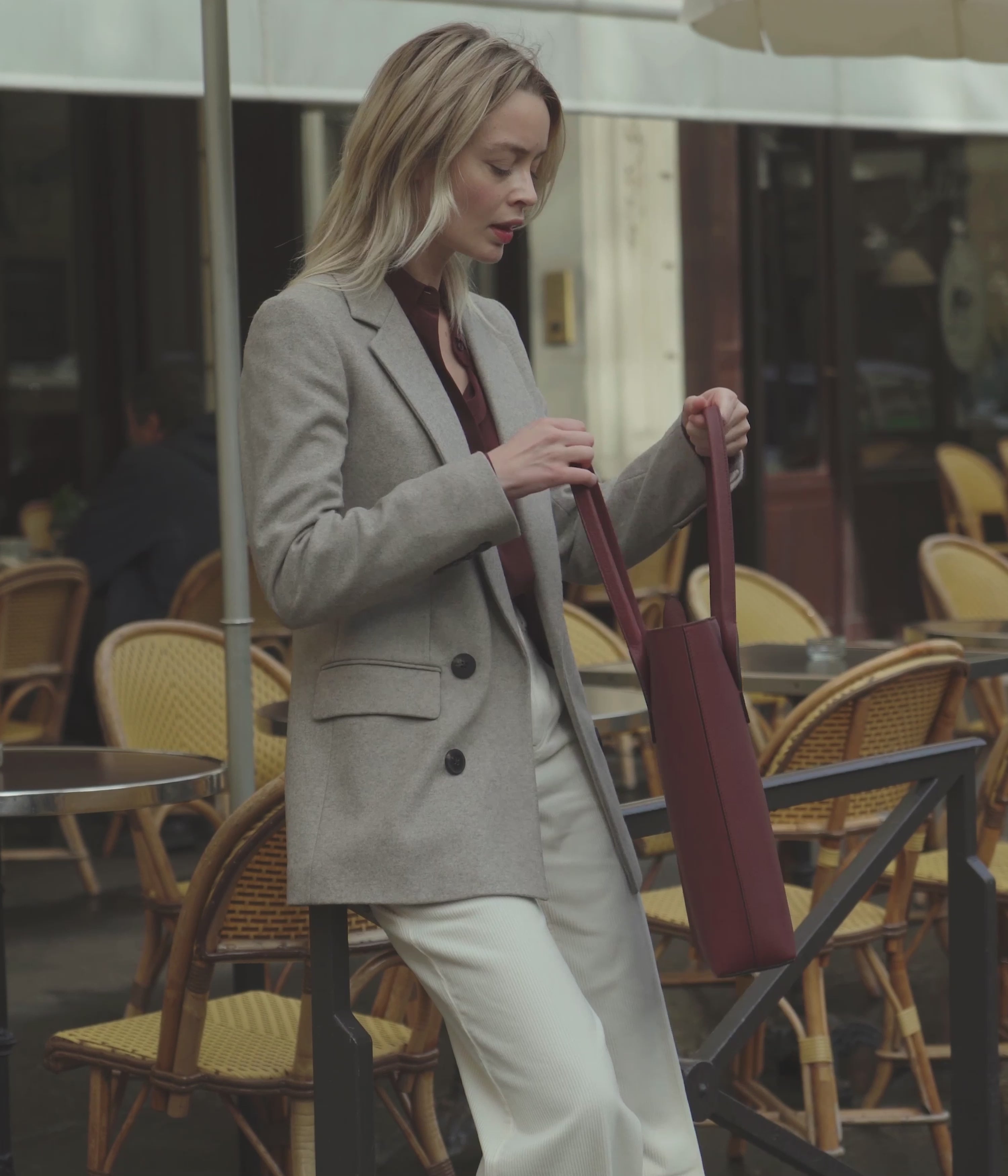 Une forme de feuille termine avec élégance l’anse de ce sac ample et féminin. Il porte en lui une forme d’envie, ou est-ce de la frénésie ? Celle de conquérir les rues de Paris. Découvrez l'élégance incarnée dans notre Sac Cabas Bordeaux, une pièce de maroquinerie haut de gamme idéale pour votre garde-robe professionnelle. Ce sac, minutieusement fabriqué à la main en Italie, allie fonctionnalité et esthétisme. Son cuir de veau grainé bordeaux, richement teinté, offre une sophistication intemporelle qui s'harmonise parfaitement avec toutes les couleurs de votre tenue.